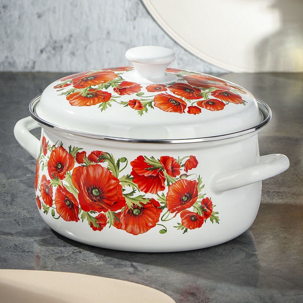 Кастрюля эмалированная Daniks «Маковый цвет»: долговечная стальная посуда 3 л для уютной кухни, идеальна для дома и дачи. Прочная, стильная, легко мыть!