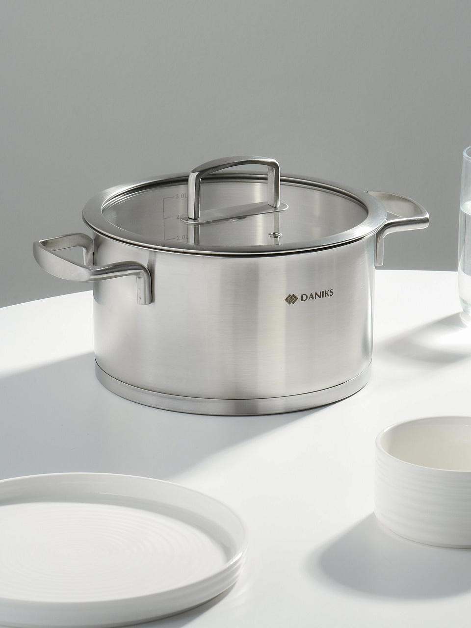Если вы ищете, какую кастрюлю выбрать для индукционной плиты или какой объем подойдет для супа на семью, модель Daniks Тахо 3.6 л — оптимальный вариант. Корпус из стали 304 устойчив к коррозии, не впитывает запахи и легко очищается даже после варки борща или варенья. Капсульное дно обеспечивает равномерное распределение тепла — пища готовится быстрее и не пригорает, что особенно важно при приготовлении голубцов или пюре.