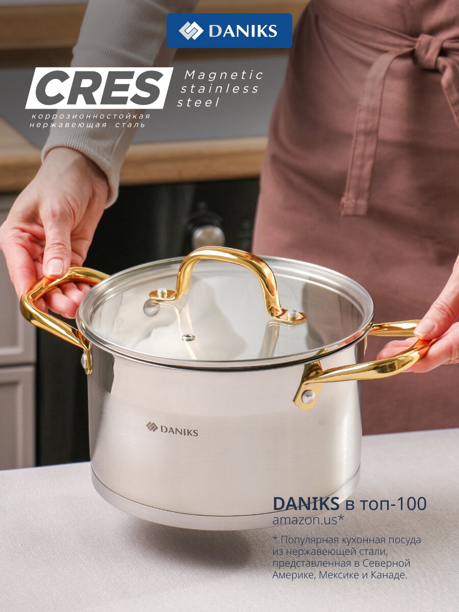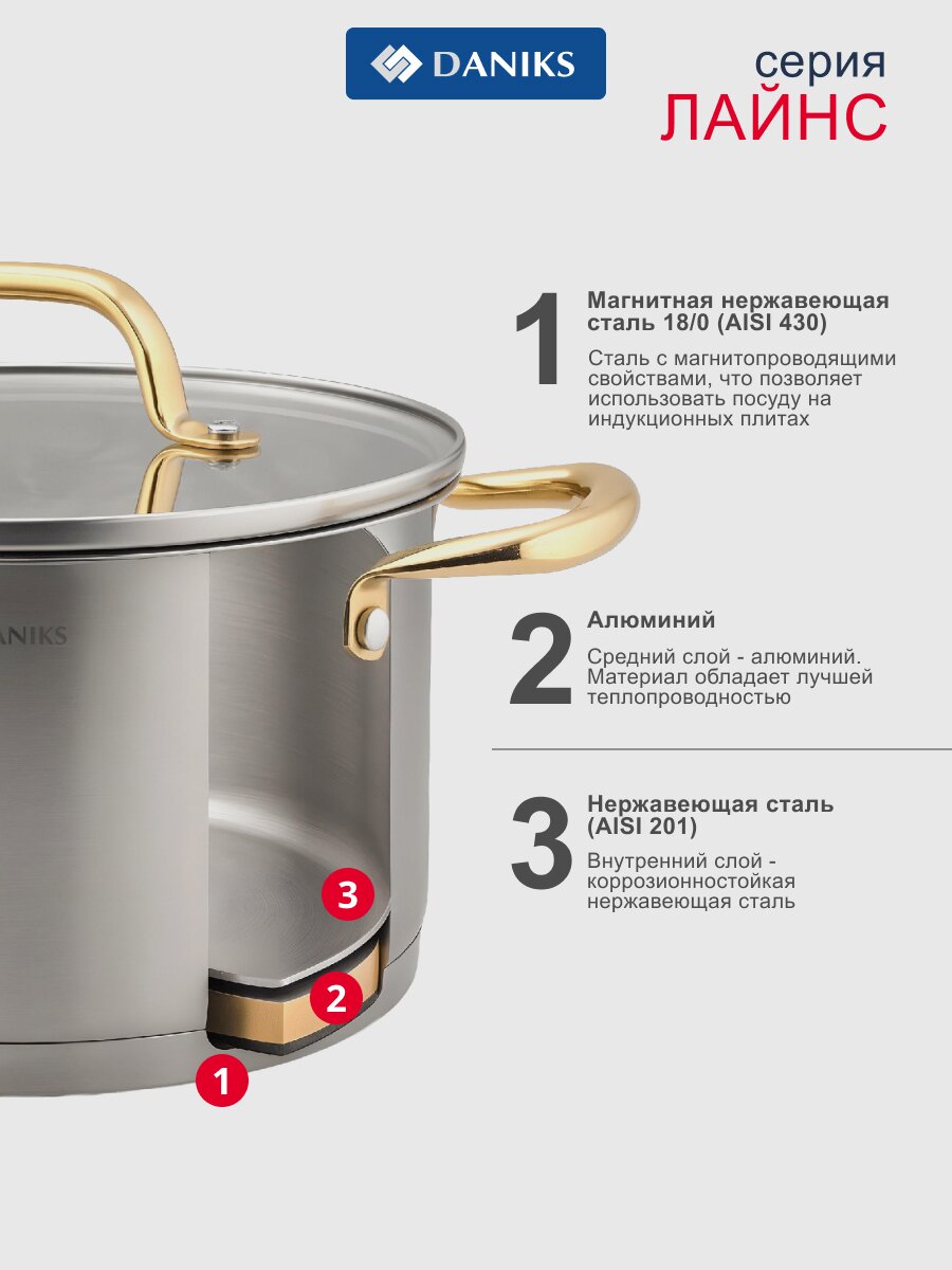 Закажите кастрюлю Daniks Лайнс прямо сейчас — получите универсальную посуду для дома и дачи с официальной гарантией и быстрой доставкой.