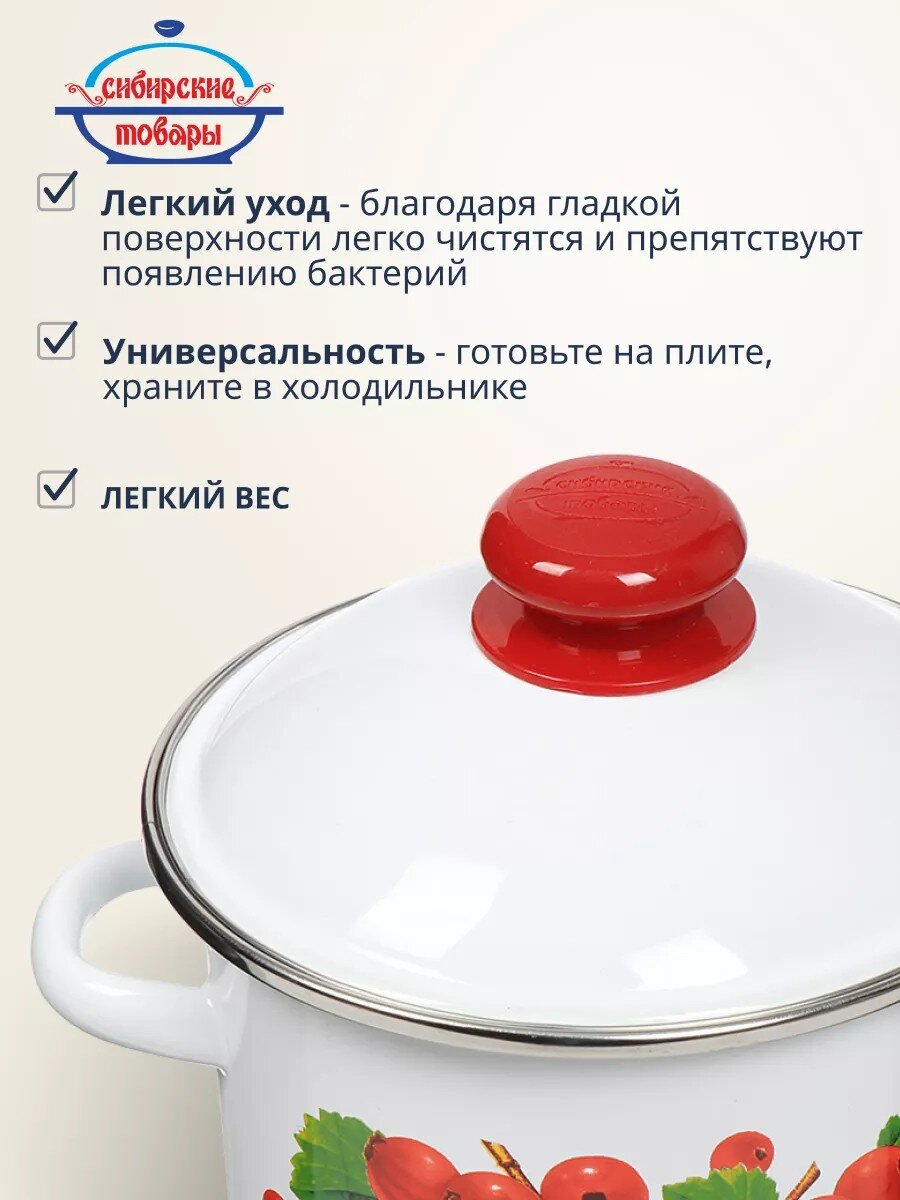 Вы можете приобрести «Кастрюля эмалированная сталь, 2 л, крышка сталь, цилиндрическая, Сибирские товары, Калина красная, 1MD161M, индукция» и другие товары в нашем интернет-магазине в Краснодаре по низким ценам и с бесплатным самовывозом.