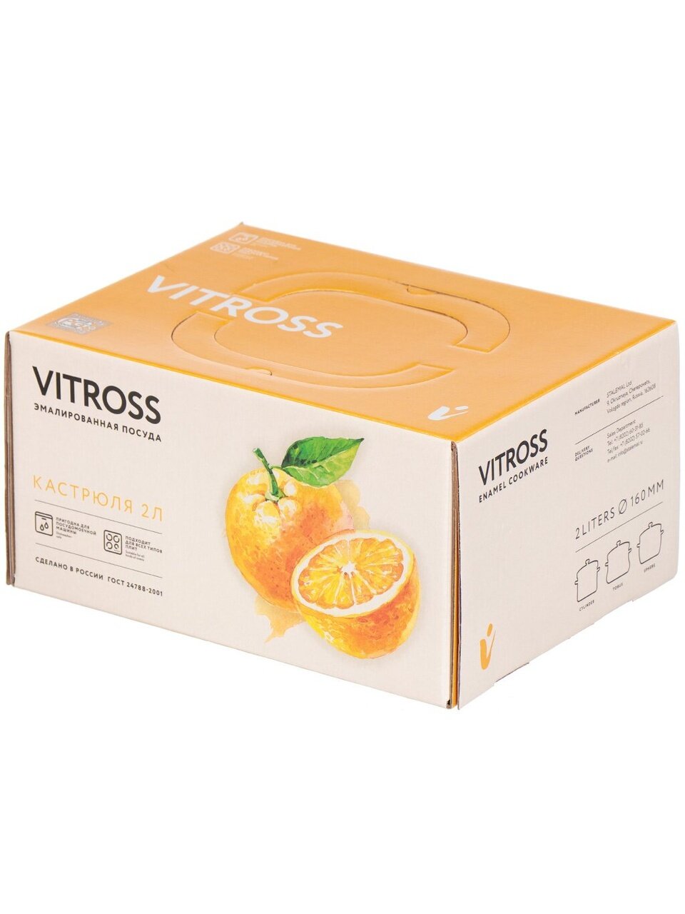 Кастрюля Vitross Granada 2 л: идеальный выбор для индукции и газовых плит, стеклянная крышка, белоснежная эмаль — долговечность, лёгкий уход, стиль на кухне.
