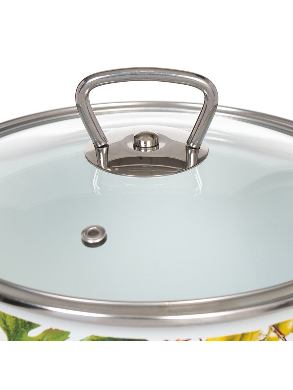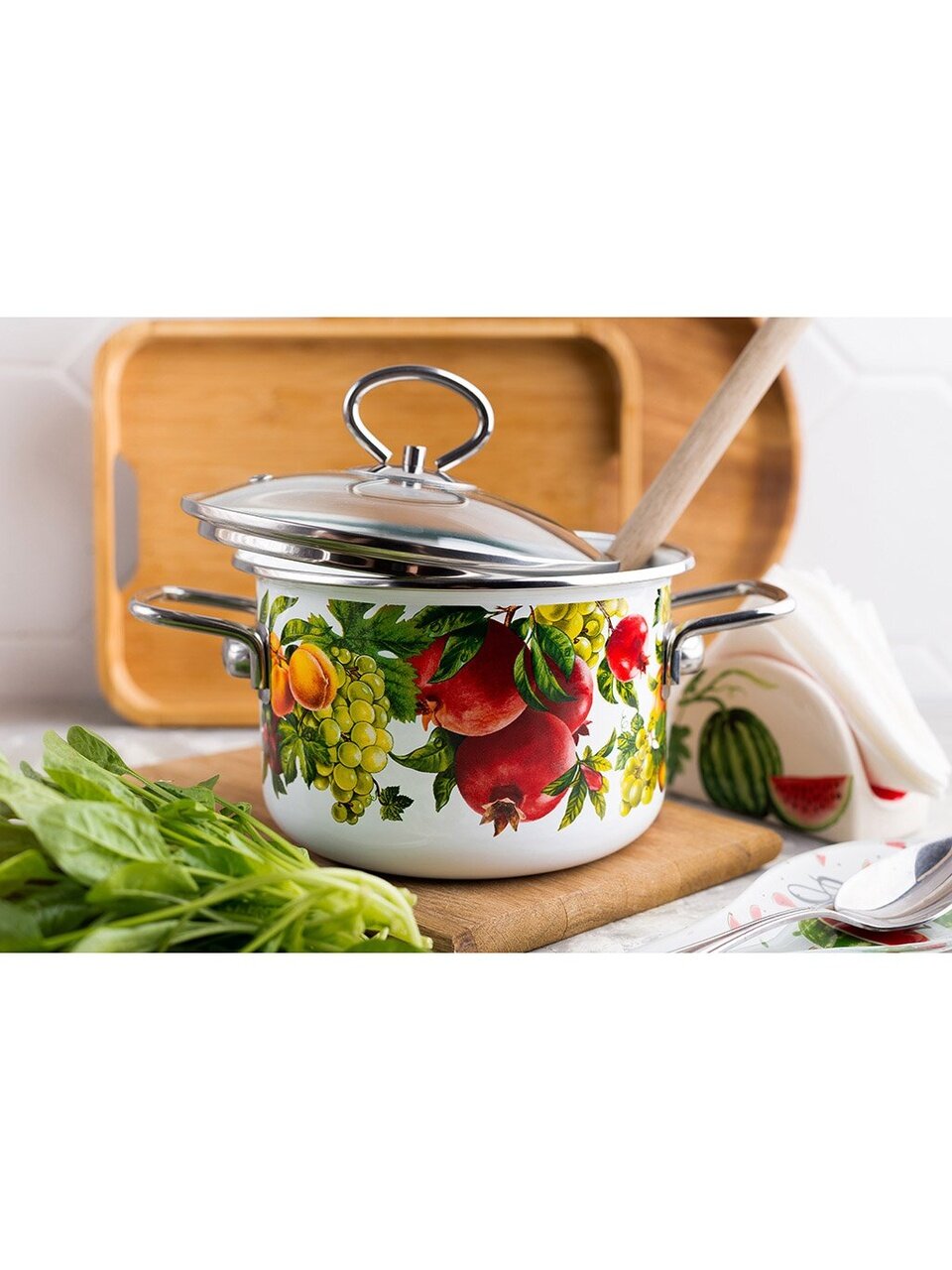 - Эмалированная сталь, объём 2 л, стеклянная крышка с клапаном — прочность, безопасность, оптимальный размер