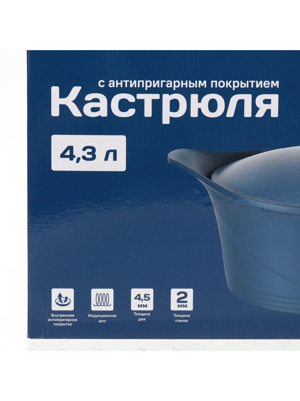 - Объем 4,3 л, утолщённое дно 4,5 мм, прочный алюминий — равномерный нагрев, долговечность, вес 2,1 кг