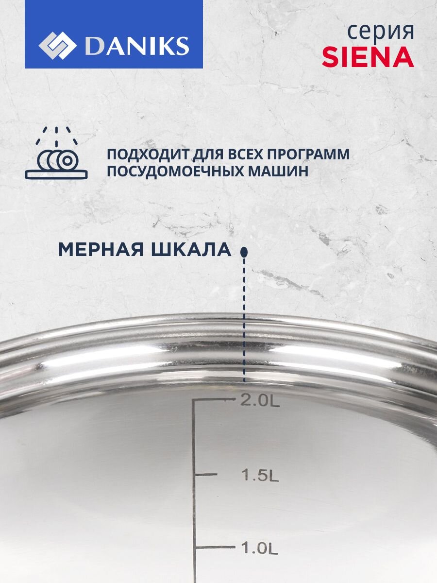 Кастрюля Daniks Сиена 2.9 л из нержавеющей стали: идеальный выбор для индукционных плит, стеклянная крышка, мерная шкала, долговечность и универсальность.