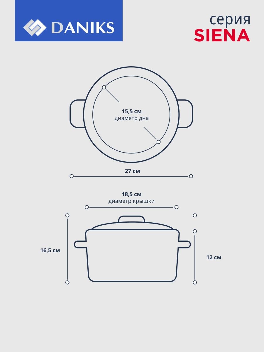 Закажите кастрюлю Daniks Сиена 2.9 л — получите универсальный кухонный инструмент с гарантией производителя и быстрой доставкой. Купите недорого кастрюлю для дачи или дома и убедитесь в качестве лично.