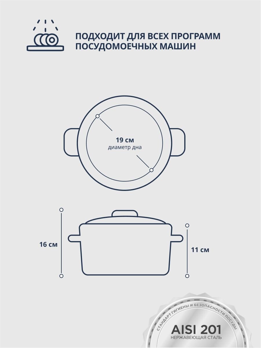 Для кого подходит эта кастрюля? Она легкая, вместительная, не требует сложного ухода, и станет отличным выбором для приготовления супов, каш, компотов и гарниров. Благодаря компактному диаметру (18 см) и высоте (11 см без крышки) кастрюля не займет много места на кухне и легко помещается в стандартные шкафы.