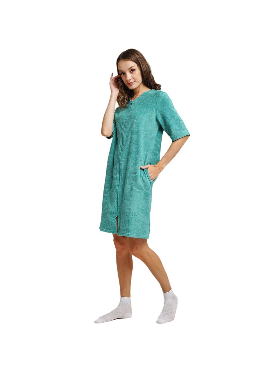 - Халат имеет два боковых кармана.