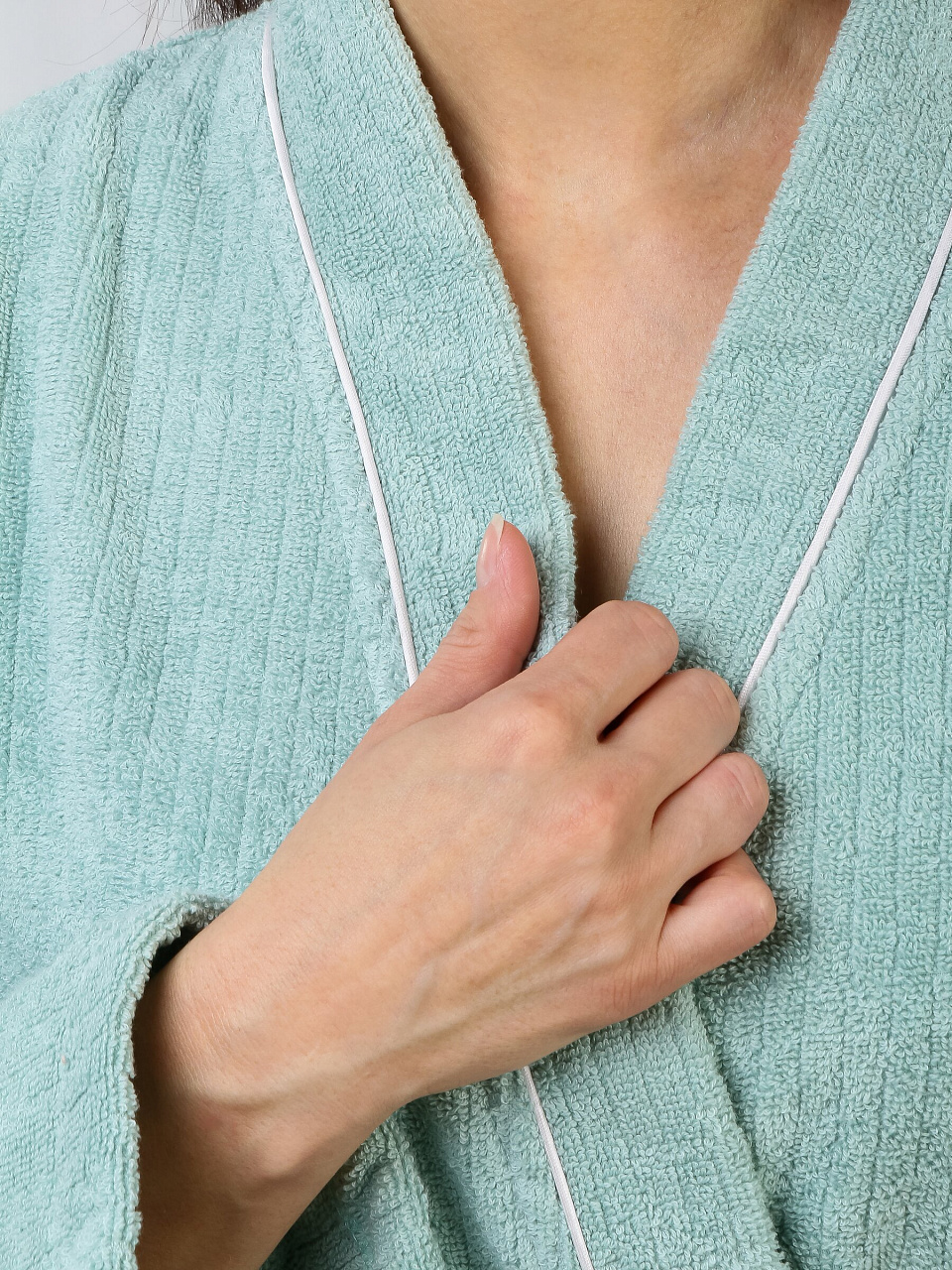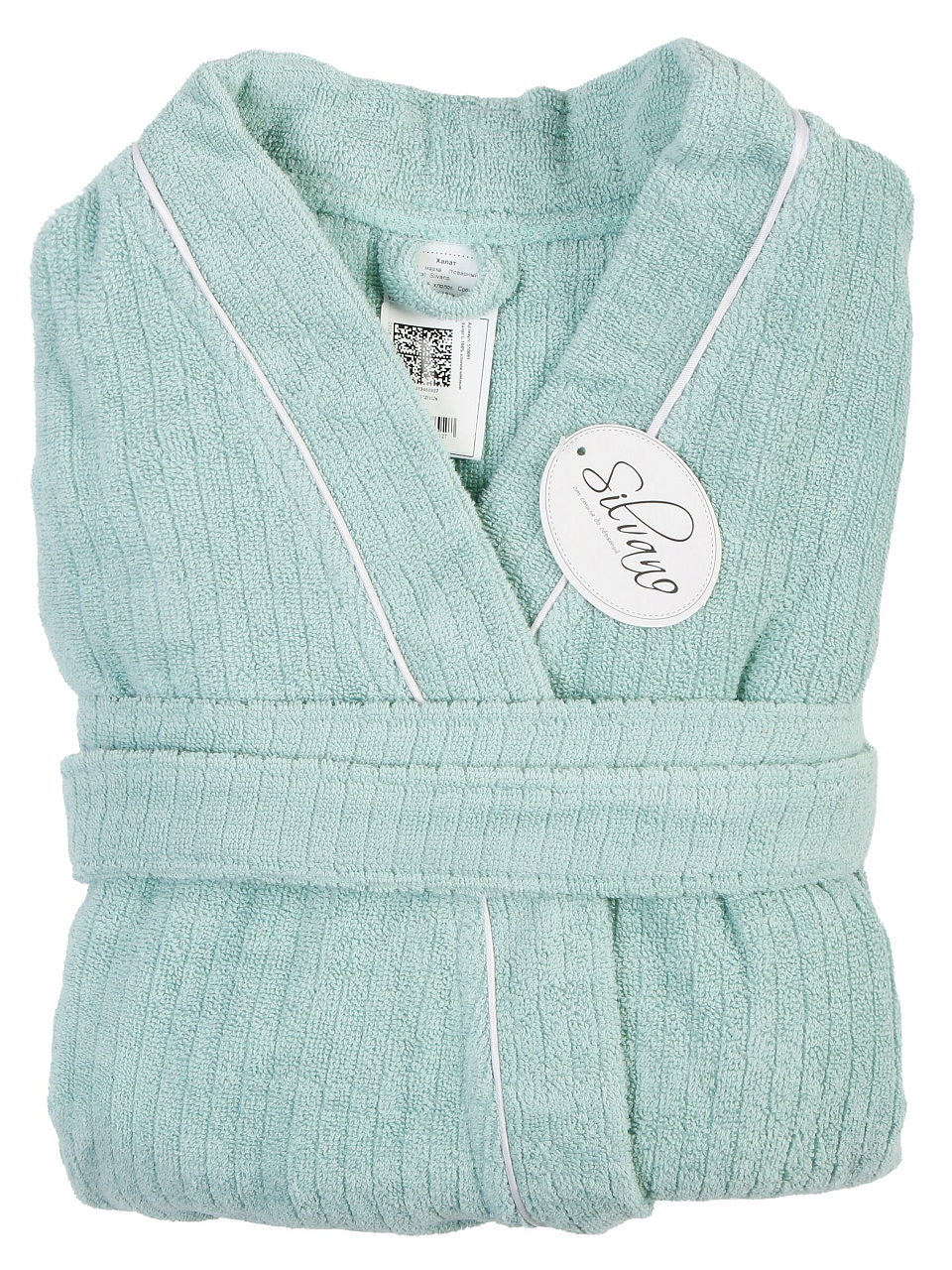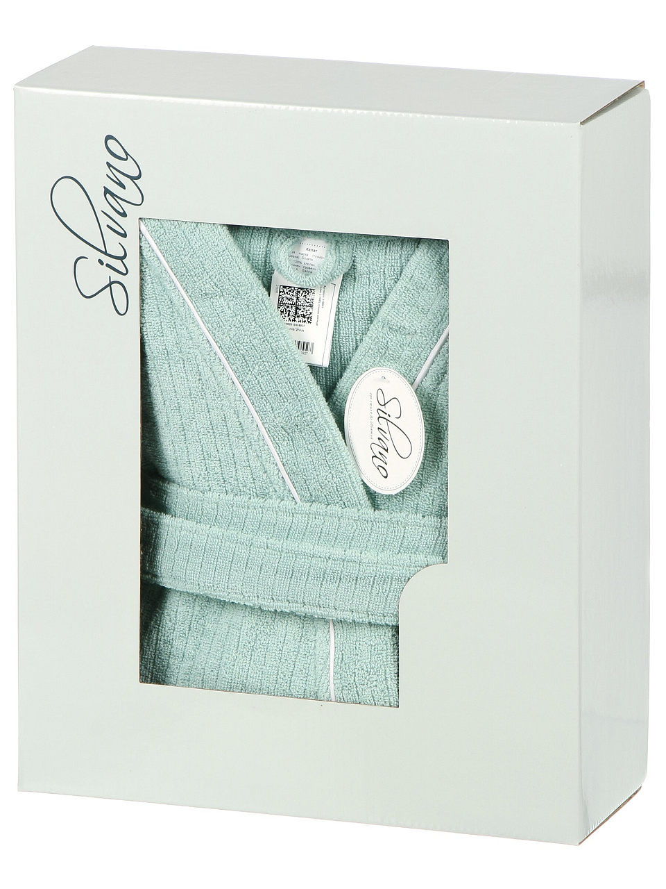 Махровый унисекс халат Silvano L (50-52), 100% хлопок, мятный: идеальный выбор для комфорта дома, дачи или в подарок — дышащий, мягкий, долговечный.