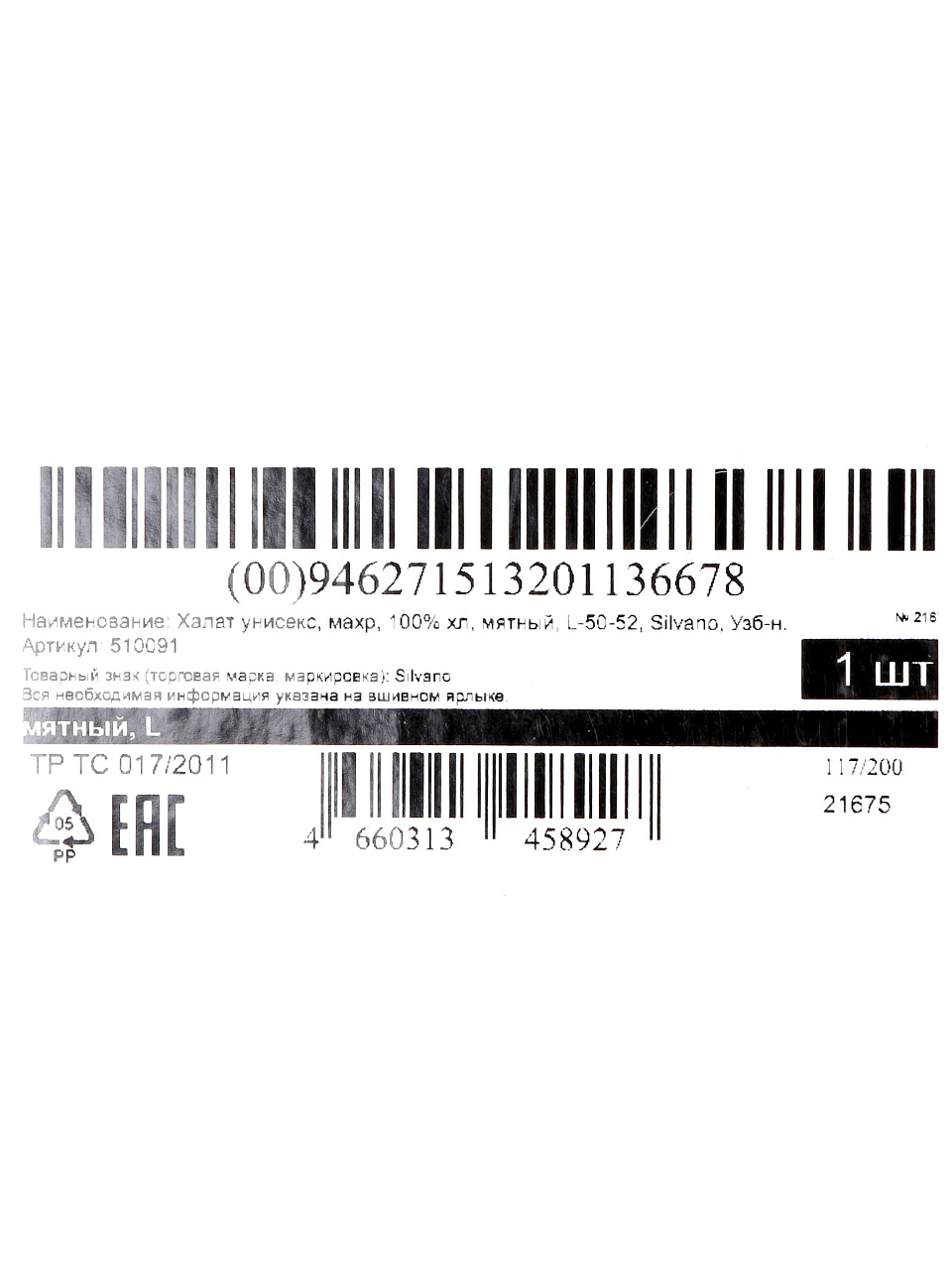 Вы можете приобрести «Халат унисекс, махровый, 100% хлопок, мятный, L, 50-52, Silvano» и другие товары в нашем интернет-магазине в Ельце по низким ценам и с бесплатным самовывозом.
