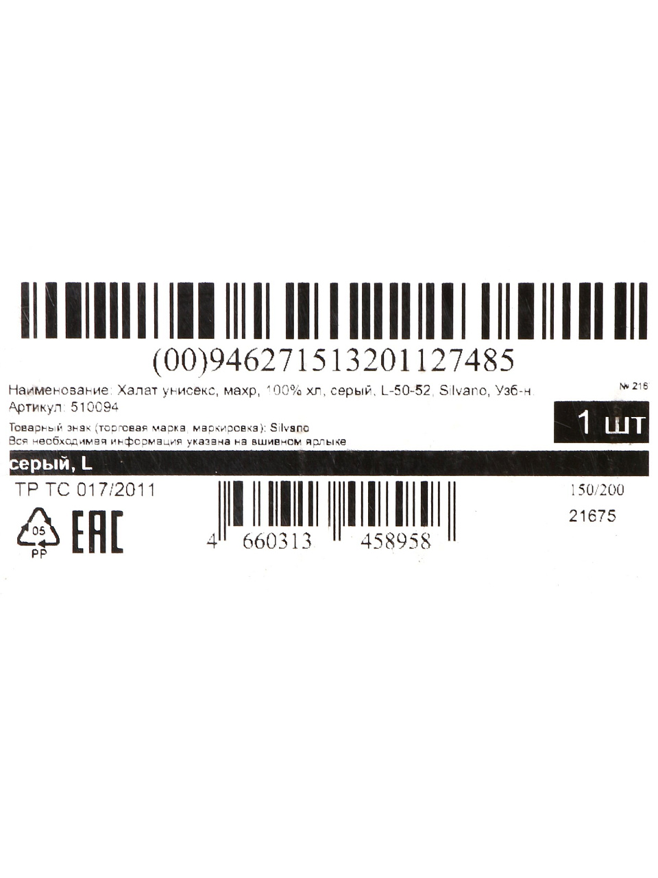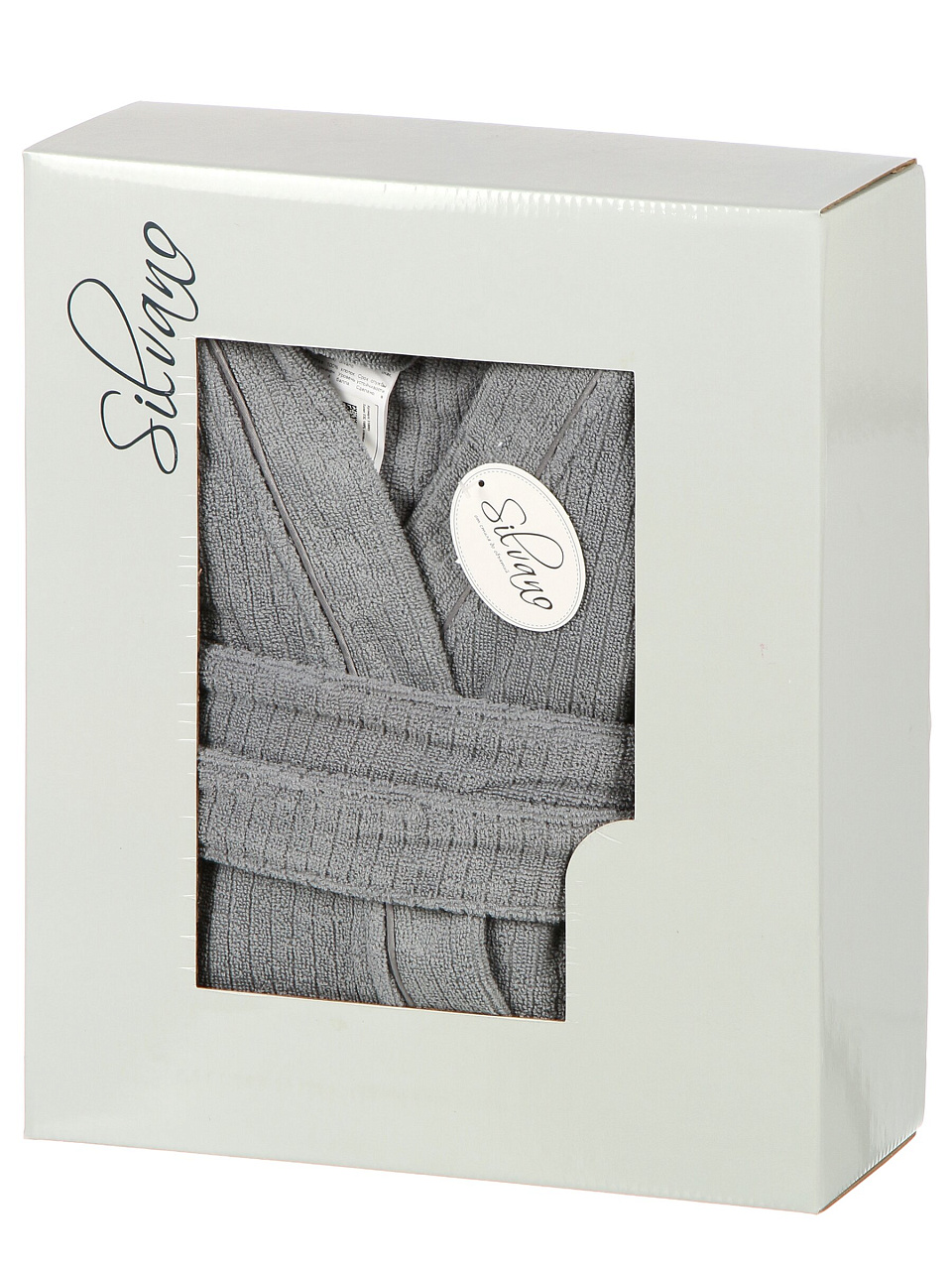 Халат унисекс, махровый, 100% хлопок, серый, L, 50-52, Silvano
