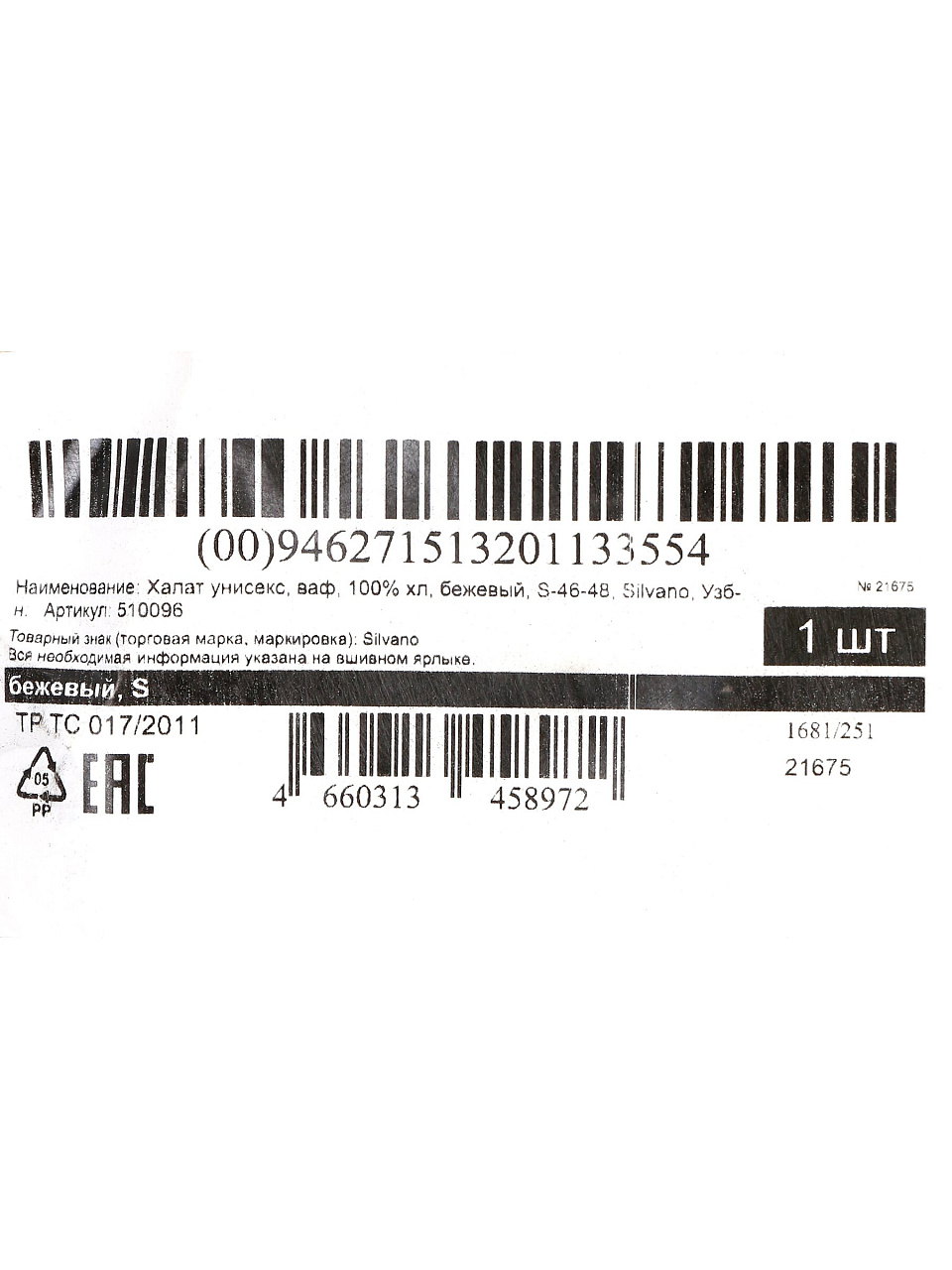 Универсальный вафельный халат Silvano: 100% хлопок, бежевый, для мужчин и женщин. Идеален для дома, дачи, сауны или в подарок – комфорт и стиль по доступной цене.