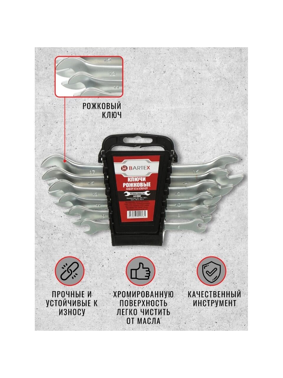 Вы можете приобрести «Набор ключей рожковый, М60, 6 предметов, Bartex, 6-17 мм, матовый, CrV сталь, держатель» и другие товары в нашем интернет-магазине в Железногорске по низким ценам и с бесплатным самовывозом.