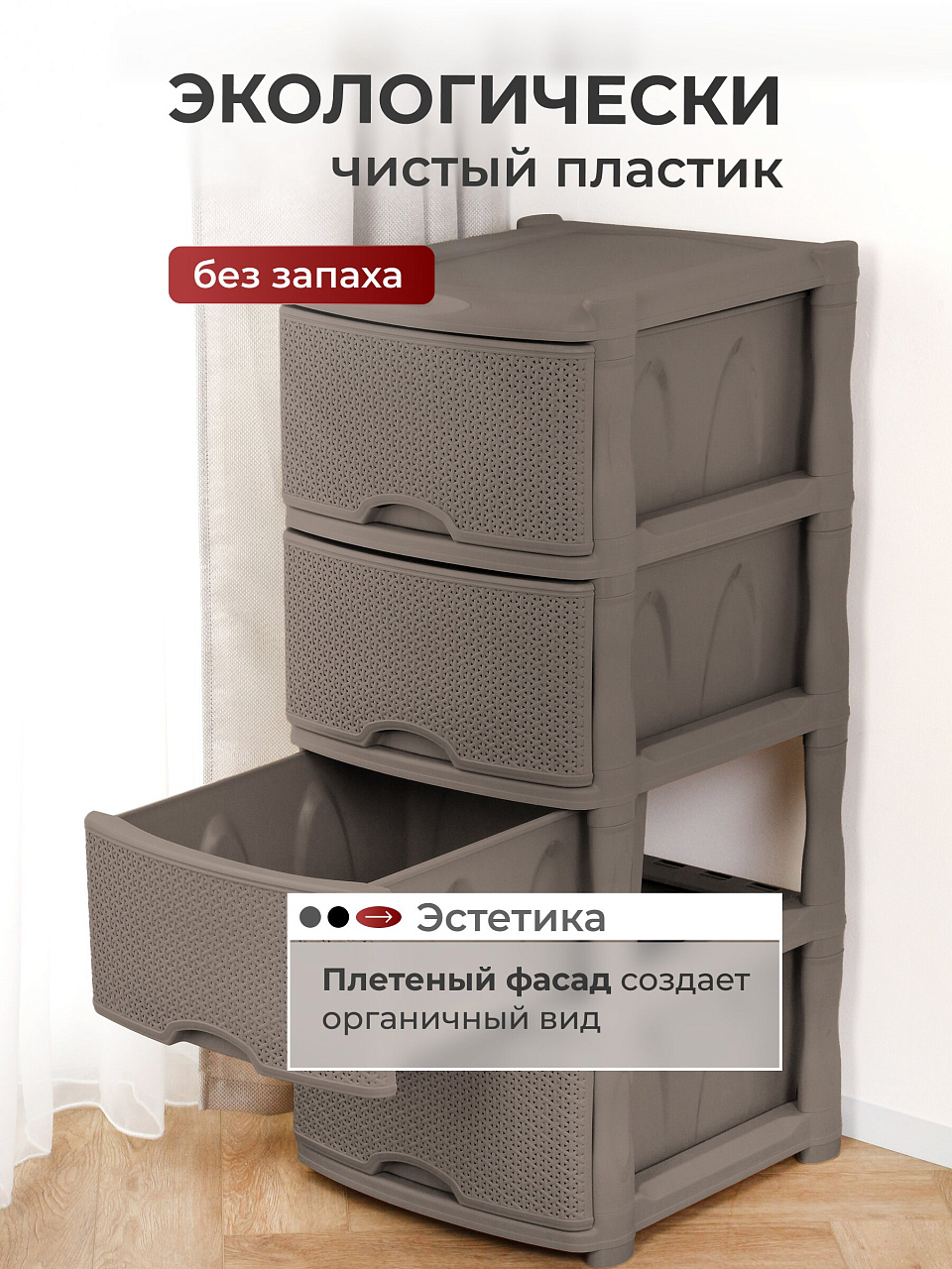 Комод Rattan от Keeplex — это не просто мебель. Это возможность создать уют и организованность в доме. Покупка этого комода позволит эффективно использовать пространство, сохраняя порядок и стиль. Этот комод станет надежным помощником в хранении вещей, делая быт более комфортным и организованным. Выгода от приобретения комода очевидна: больше порядка, больше времени для себя и своих близких.