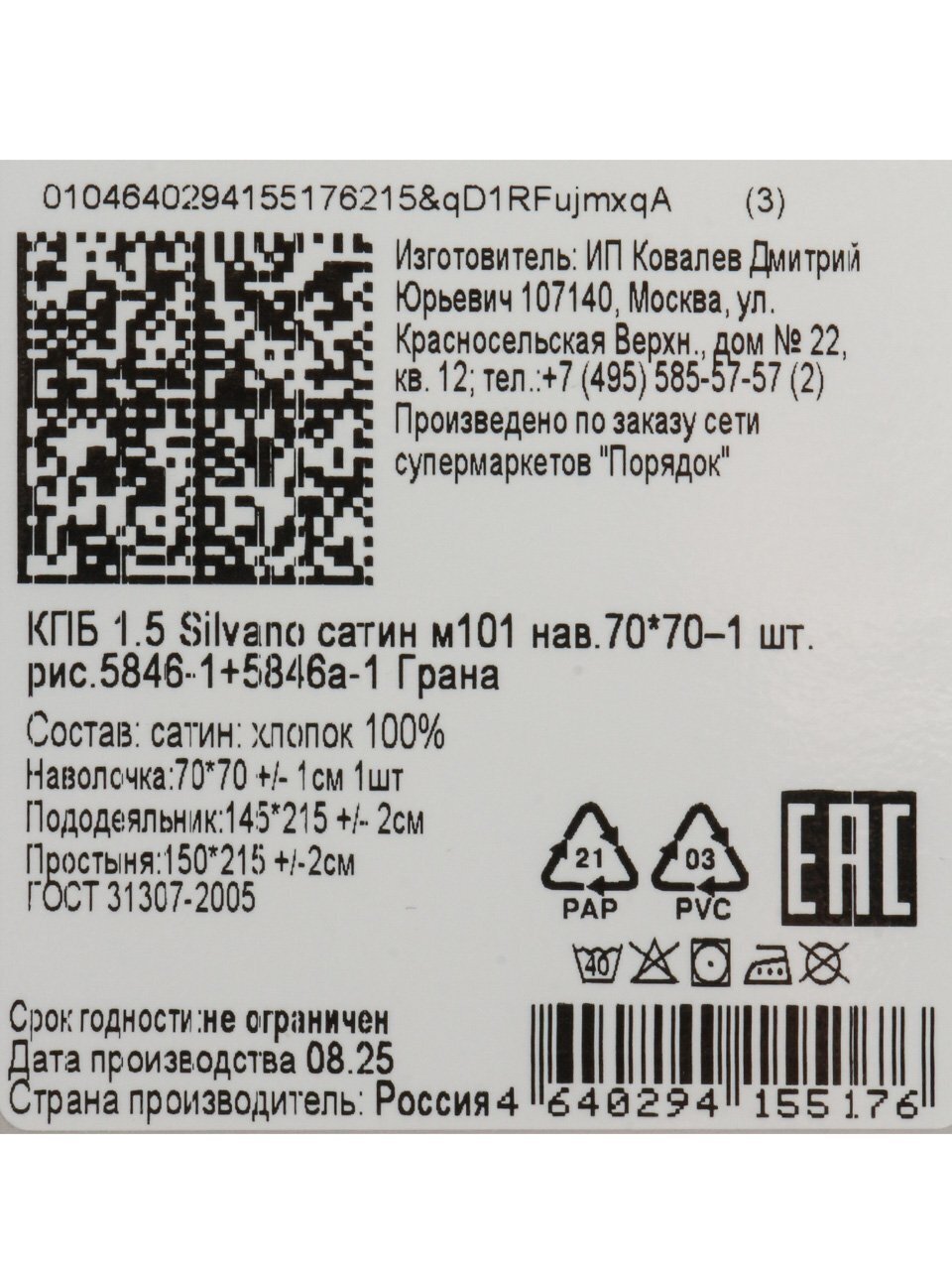 Вы можете приобрести «Постельное белье 1.5-спальное, простыня 150х215 см, 1 наволочка 70х70 см, пододеяльник 145х215 см, Silvano, сатин, Грана» и другие товары в нашем интернет-магазине в Коврове по низким ценам и с бесплатным самовывозом.