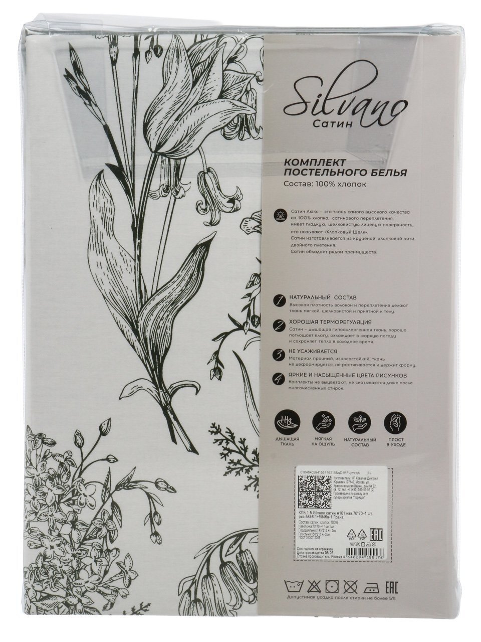 - Сатиновое плетение из 100% хлопка — мягкость и шелковистый блеск для максимального уюта.
