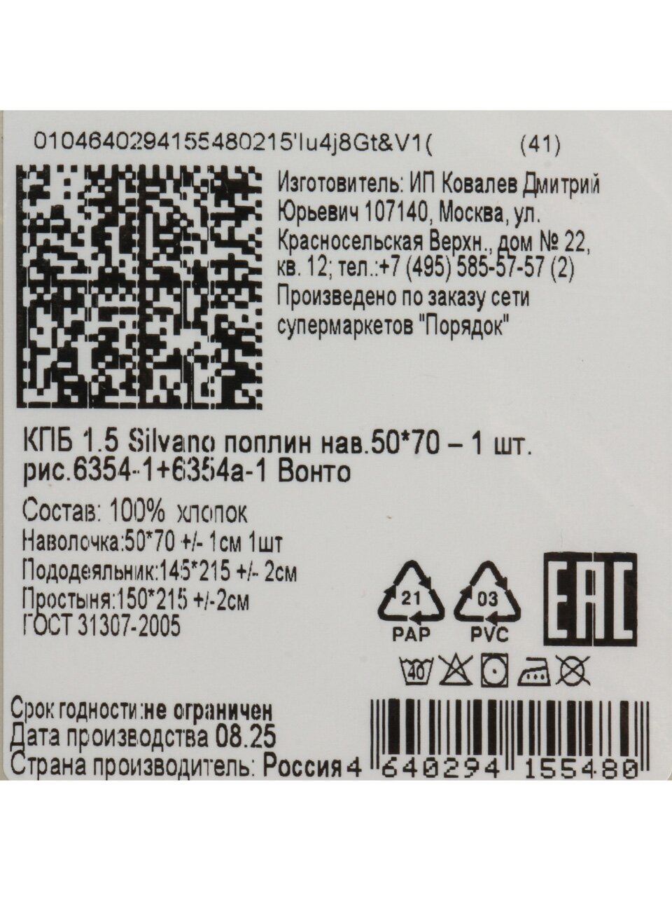 Вы можете приобрести «Постельное белье 1.5-спальное, простыня 150х215 см, 2 наволочки 50х70 см, пододеяльник 145х215 см, Silvano, поплин, Вонто» и другие товары в нашем интернет-магазине в Астрахани по низким ценам и с бесплатным самовывозом.