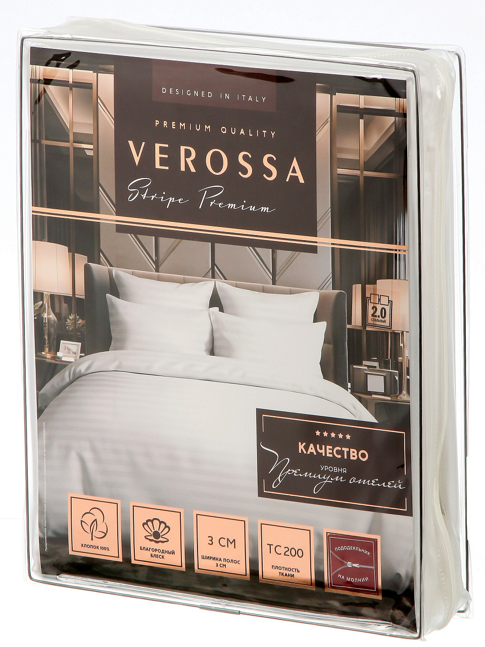 Постельное белье Verossa 2-спальное сатин Stripe Royal: премиум-комфорт, долговечность и стиль для вашего дома или подарка — комплект 220х240 см с молнией, в подарочной упаковке.
