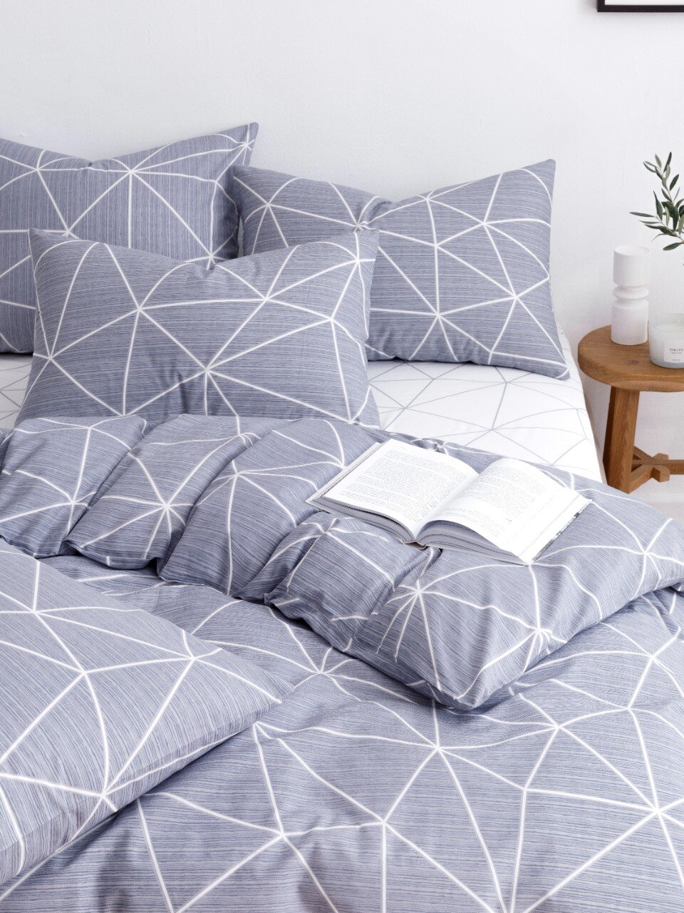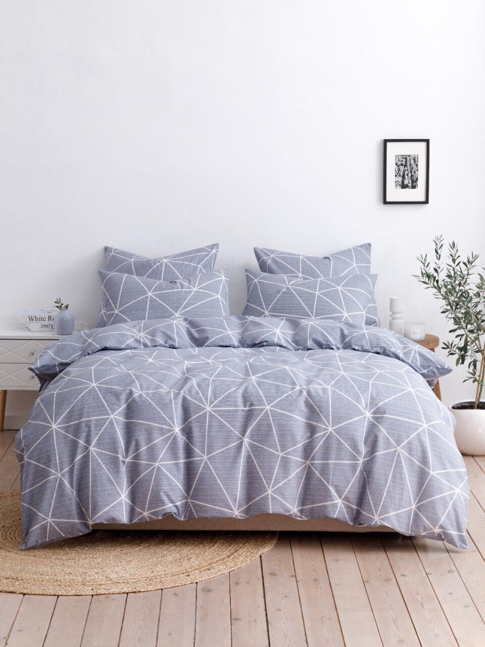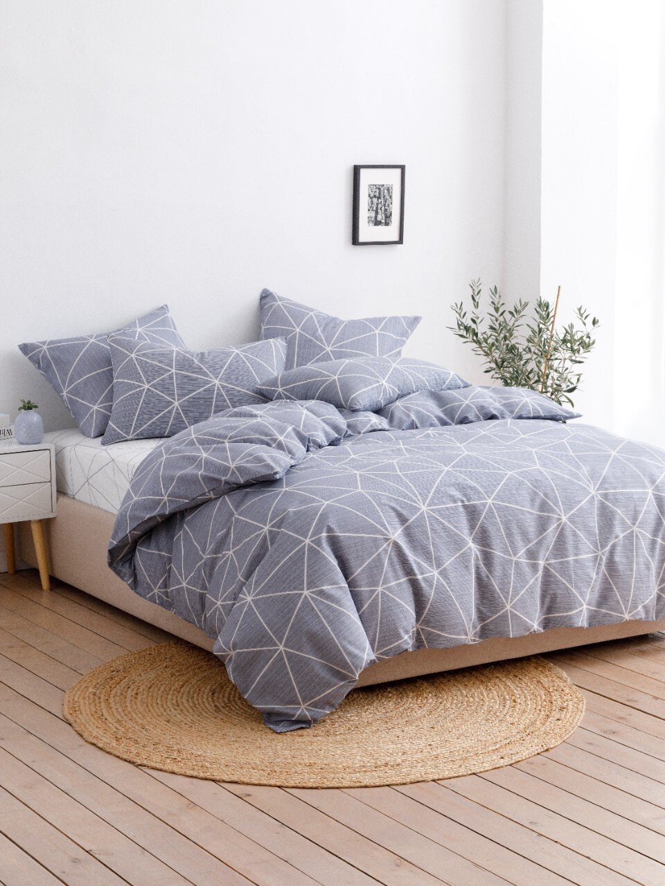 Постельное белье 2-спальное Silvano «Грань» из поплина: идеальный выбор для комфортного сна и стильного интерьера, подарочная упаковка, универсальный серый цвет.