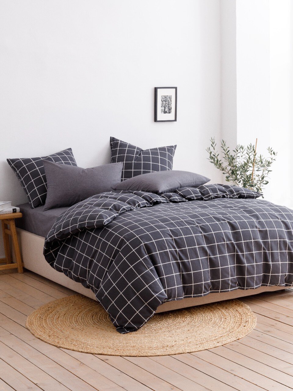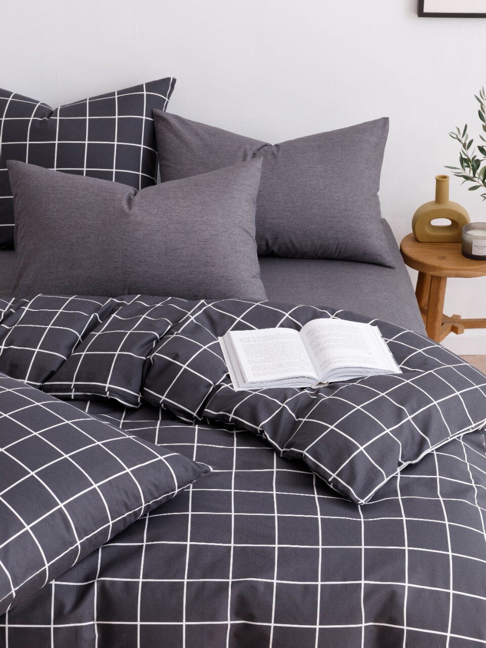 - Полный 2-спальный комплект: простыня 180х215 см, пододеяльник 175х215 см, 2 наволочки 70х70 см — подходит к стандартным кроватям