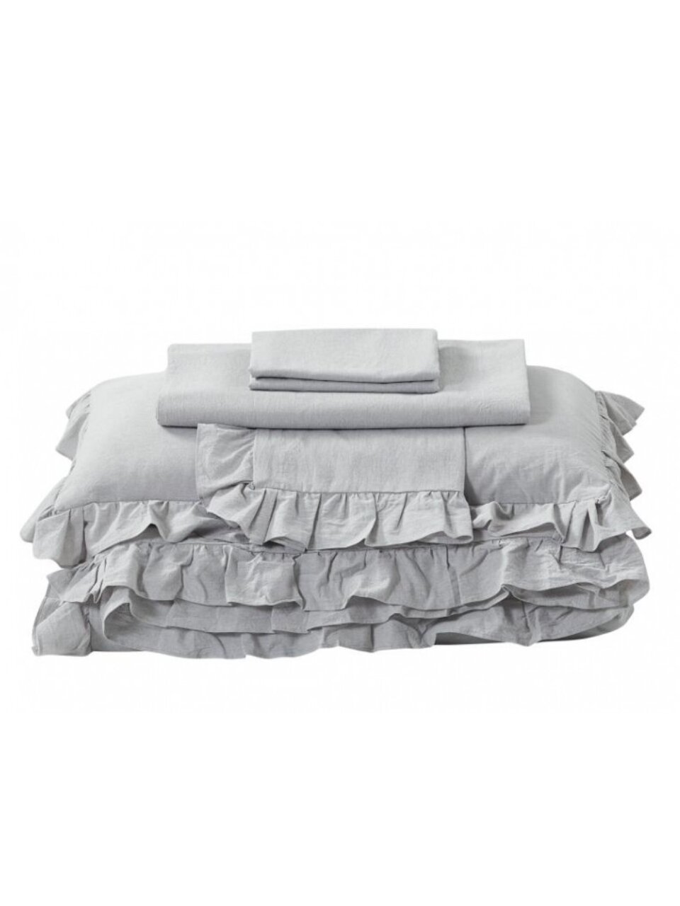 В комплекте простыня размером 230×250 см и пододеяльник 200×220 см на молнии. В наборе 4 наволочки: 2×70×70 см и 2×50×70 см.