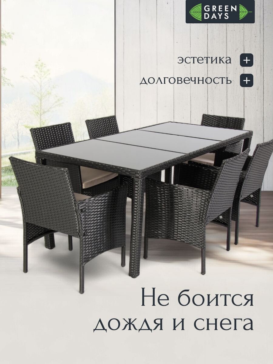 Вы можете приобрести «Мебель садовая Green Days, Эльмира, черная, стол, 190х90х75 см, 6 кресел, подушка бежевая, 120 кг, J-2022» и другие товары в нашем интернет-магазине в Смоленске по низким ценам и с бесплатным самовывозом.