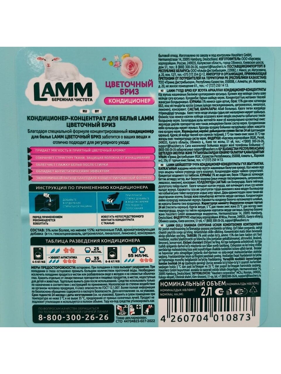 Ощутите свежесть и легкость с кондиционером для белья Lamm, 2 л, Цветочный бриз, концентрат. Этот продукт создан для тех, кто ценит комфорт и заботится о своей одежде. Кондиционер обеспечивает мягкость и нежный аромат, который окружает вас на весь день.