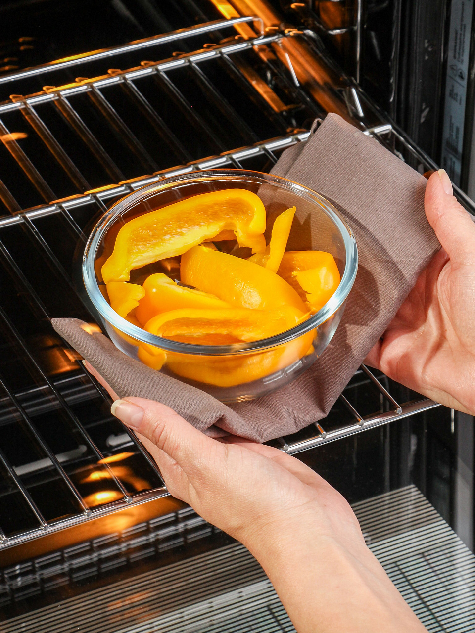 Жаропрочное стекло не впитывает запахи, не выделяет вредных веществ при нагреве, не мутнеет, дольше сохраняет прозрачность и внешний вид.