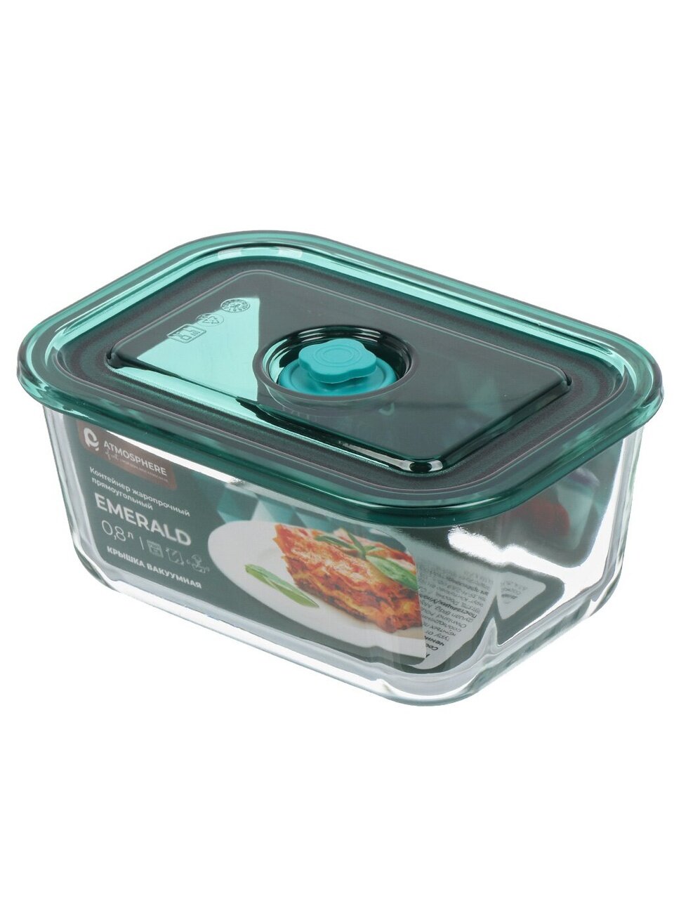 Контейнер из жаропрочного стекла Atmosphere 0.8 л — безопасное хранение и разогрев еды без протечек, подходит для СВЧ, морозилки и посудомойки.