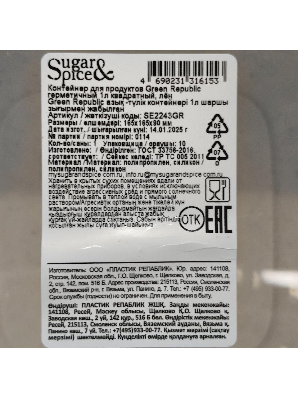 Вы можете приобрести «Контейнер пищевой пластик, 1 л, 16.5х16.5х9 см, слоновая кость, зеленый, квадратный, герметичный, Sugar&Spice, Лен, SE2243GR» и другие товары в нашем интернет-магазине в Санкт-Петербургe по низким ценам и с бесплатным самовывозом.