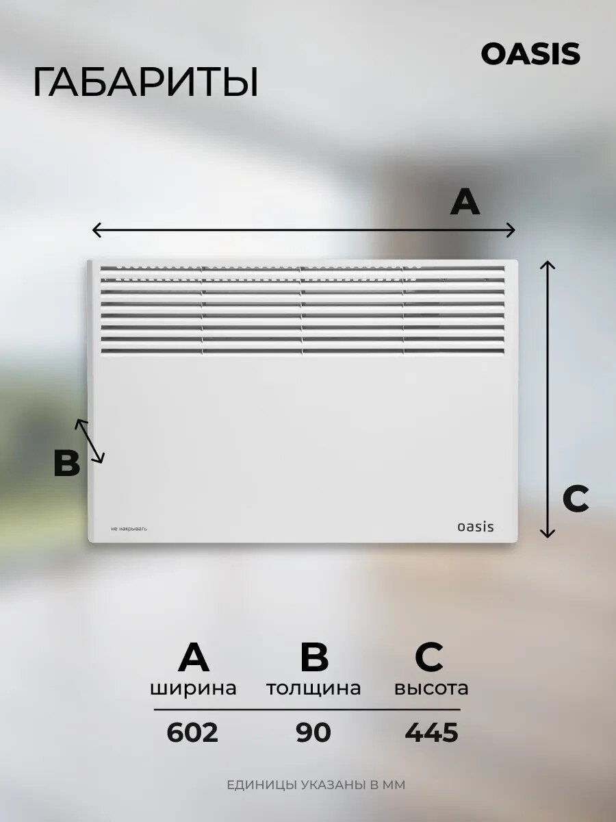 - Удобство использования. Благодаря компактным размерам и возможности настенного монтажа, конвектор Oasis KM-15 не займет много места и будет гармонично смотреться в любом интерьере.
