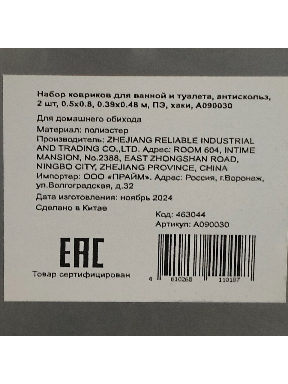 Вы можете приобрести «Набор ковриков для ванной и туалета, антискользящий, 2 шт, 0.5х0.8, 0.39х0.48 м, полиэстер, хаки, A090030» и другие товары в нашем интернет-магазине в Серпухове по низким ценам и с бесплатным самовывозом.