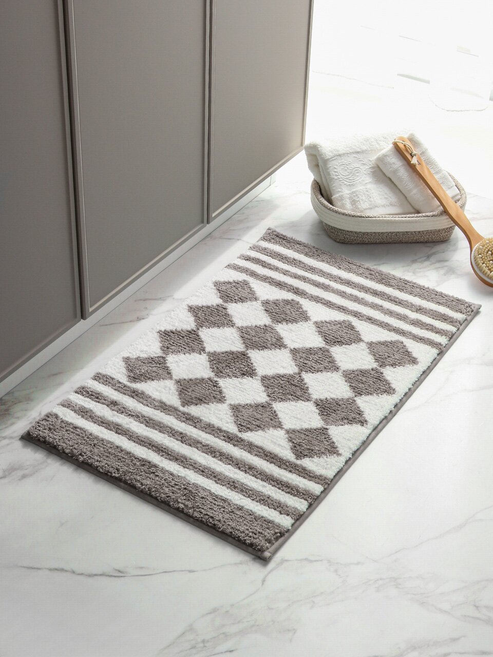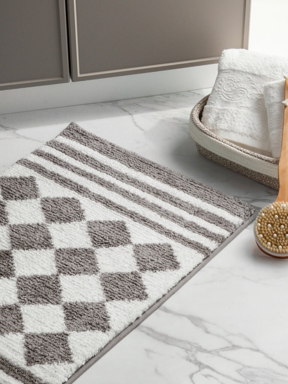 Коврик для ванной комнаты 50х80 см из микрофибры — это универсальное решение для тех, кто ищет, какой коврик выбрать для ванной, чтобы быстро впитывал влагу и легко чистился. Благодаря современным технологиям производства микрофибра обеспечивает мгновенное высыхание, не задерживает запахи и не вызывает раздражения на коже. Серо-белый цвет и геометрический узор делают этот коврик стильным дополнением любого интерьера.