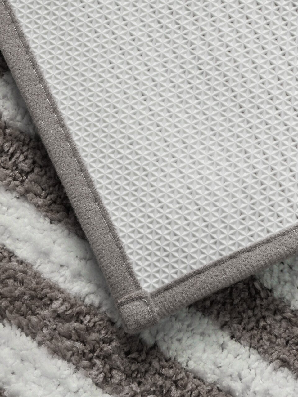 Коврик выполнен из микрофибры и полиэстера, что обеспечивает мягкость, влаговпитываемость и быстрый уход. Основание — антискользящее, без присосок.