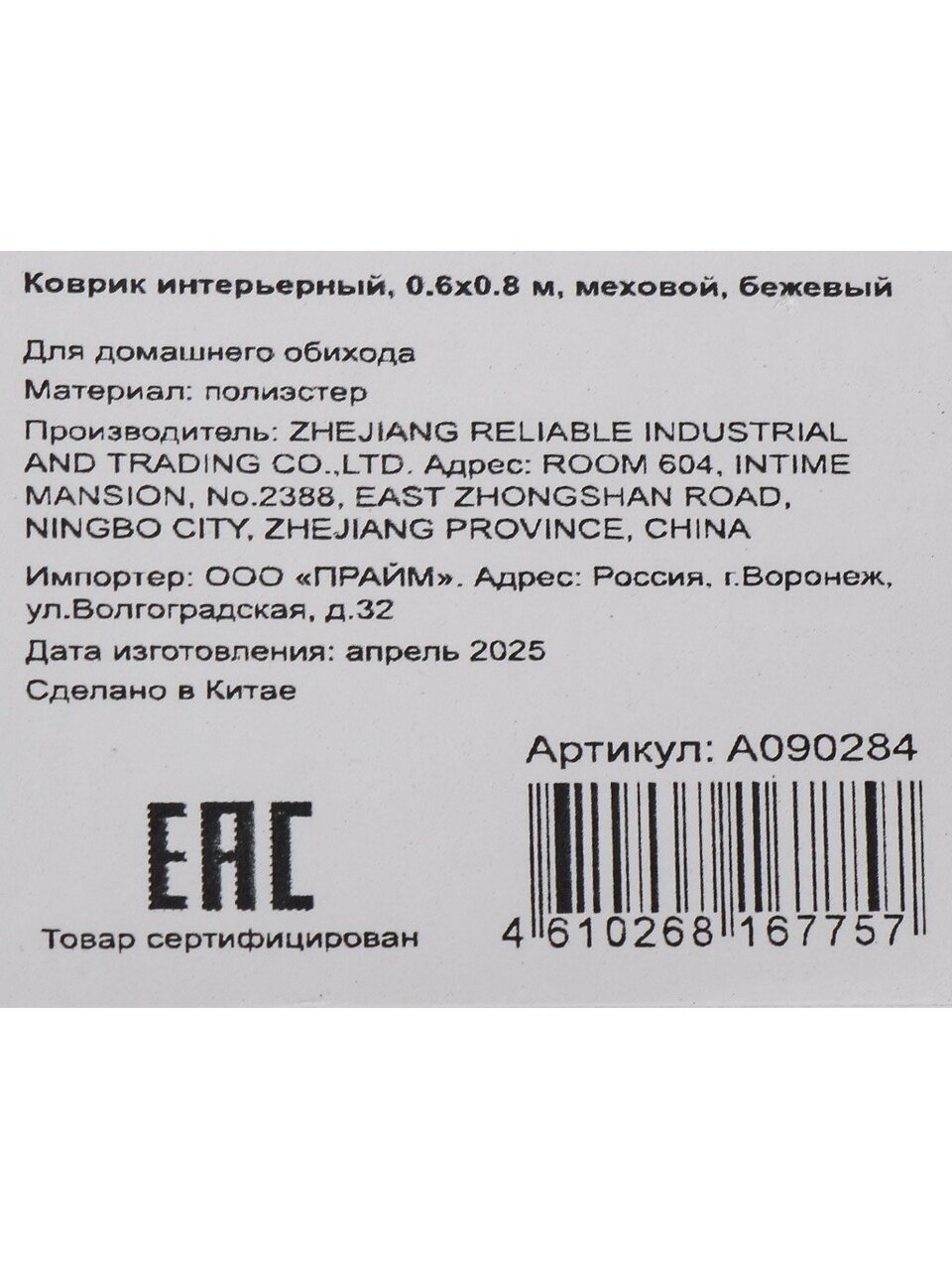 Вы можете приобрести «Коврик интерьерный 0.6х0.8 м, прямоугольный, бежевый, искусственный мех, A090284» и другие товары в нашем интернет-магазине в Курске по низким ценам и с бесплатным самовывозом.