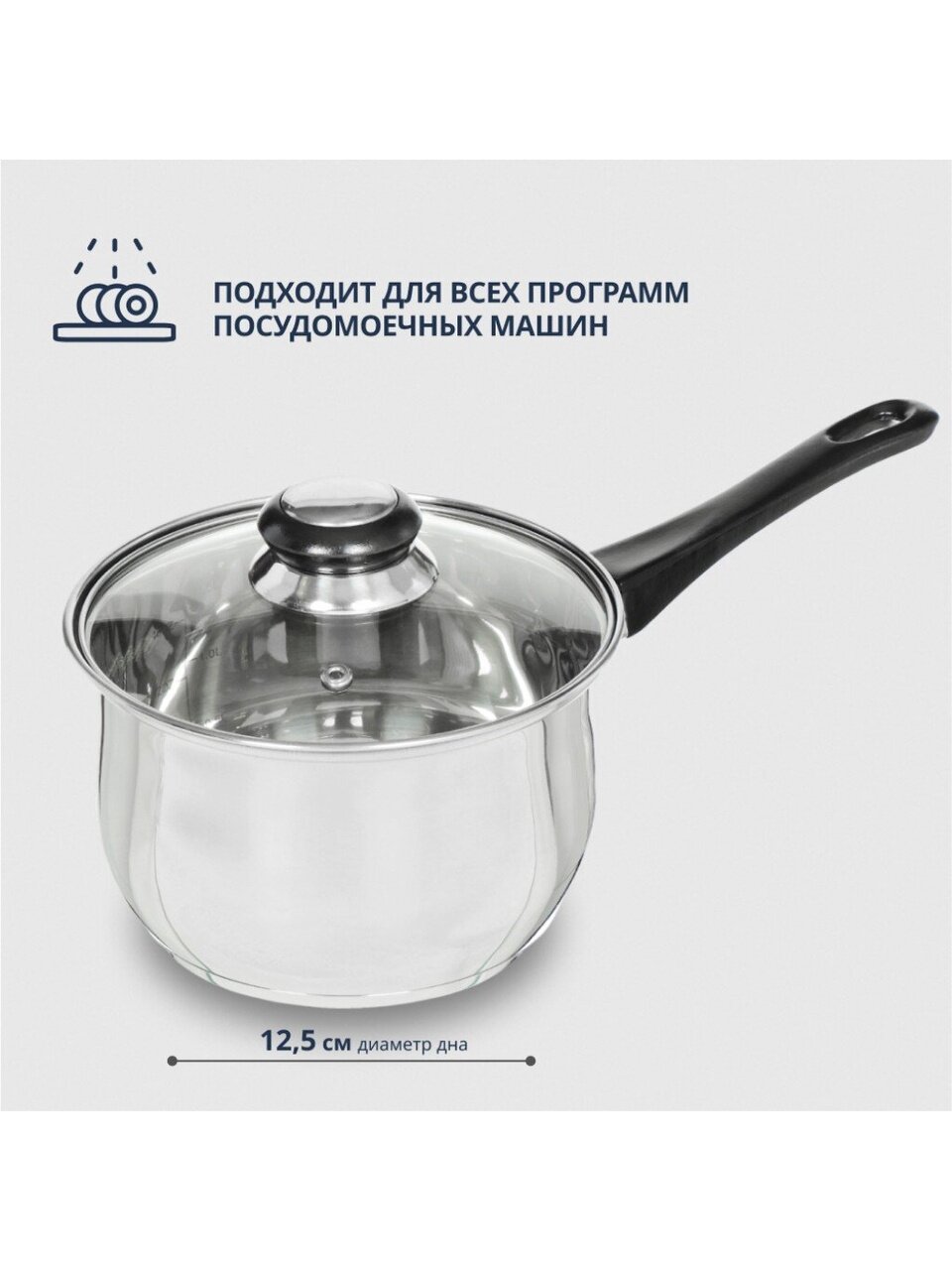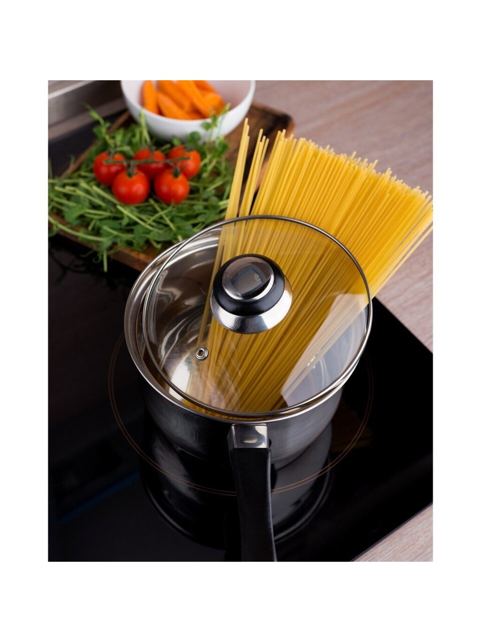 Ковшик посуды DNN SD-A19-16S выполнен из высококачественной нержавеющей стали марки 201. Крышка из прозрачного стекла позволяют контролировать процесс приготовления пищи. Ручка удобна, прочна и не нагревается при использовании посуды.