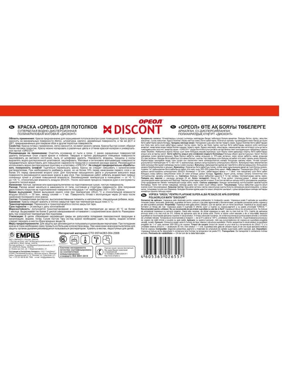 Вы можете приобрести «Краска водно-дисперсионная, Ореол, Дисконт, акриловая, для потолков, матовая, белоснежная, 6.5 кг» и другие товары в нашем интернет-магазине в Шахтах по низким ценам и с бесплатным самовывозом.