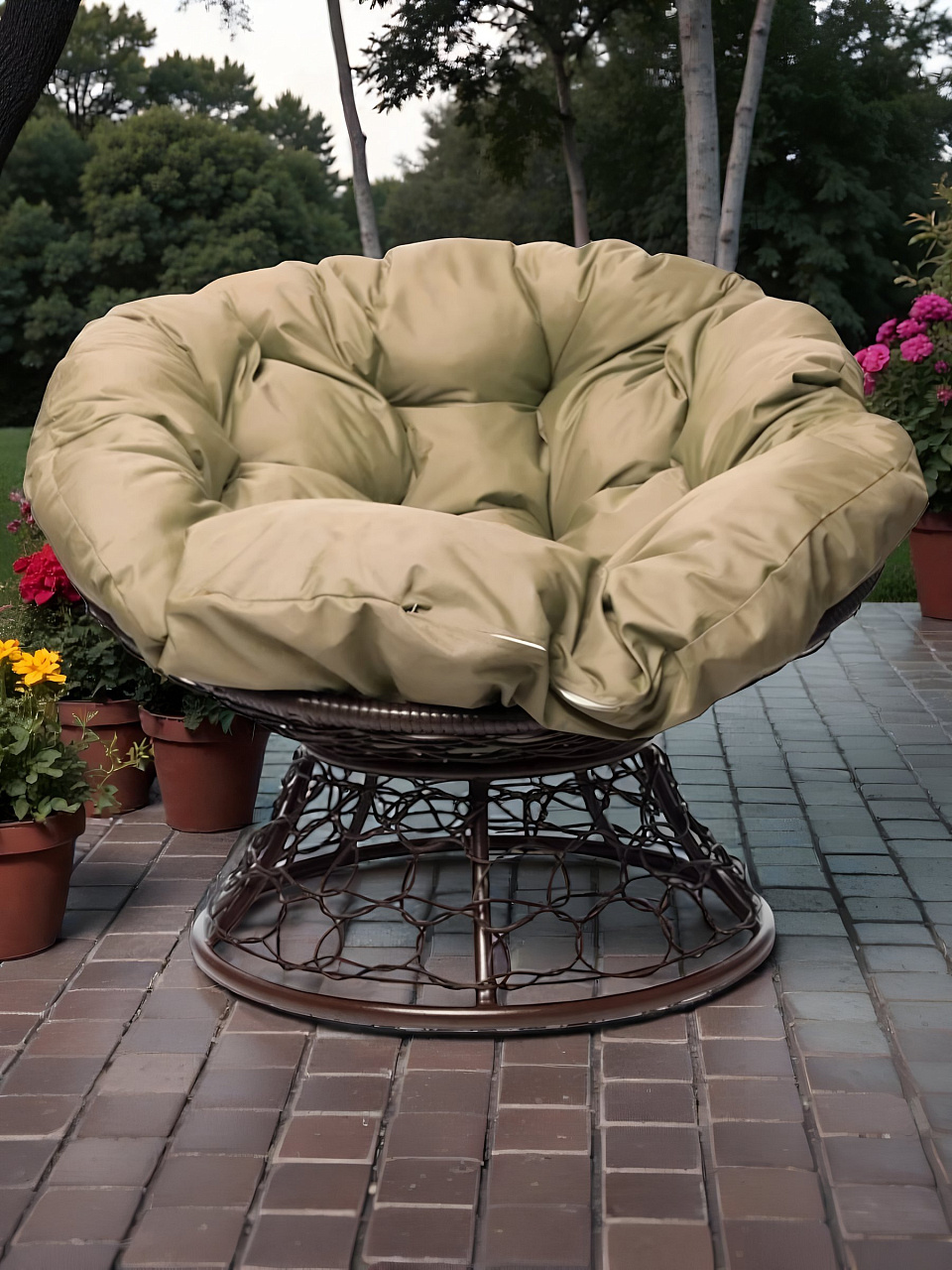 Кресло "Папасан" обладает элегантным коричневым цветом, который гармонично впишется в любой интерьер. Бежевая подушка добавляет мягкости и уюта, создавая идеальные условия для релаксации. Размеры кресла (98х58х79 см) обеспечивают достаточное пространство для комфортного отдыха, при этом оно занимает минимум места.