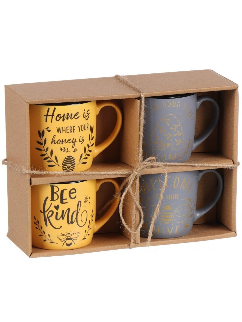 В наборе 4 керамические кружки без крышек, ситечек, ложек или трубочек — только кружки в подарочной упаковке.