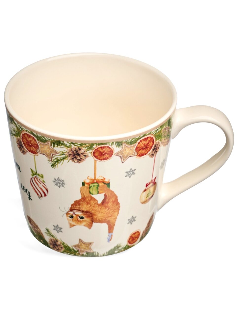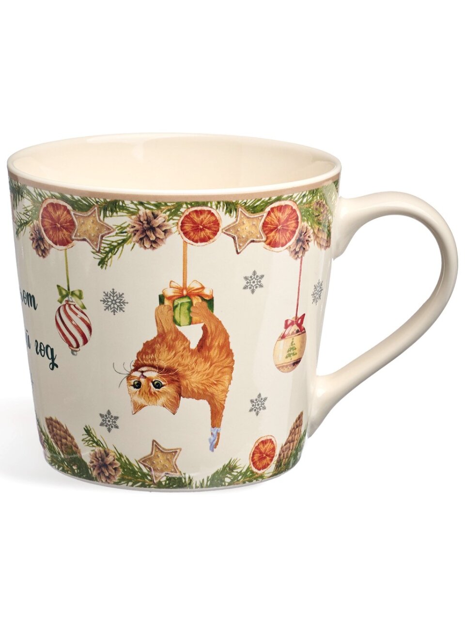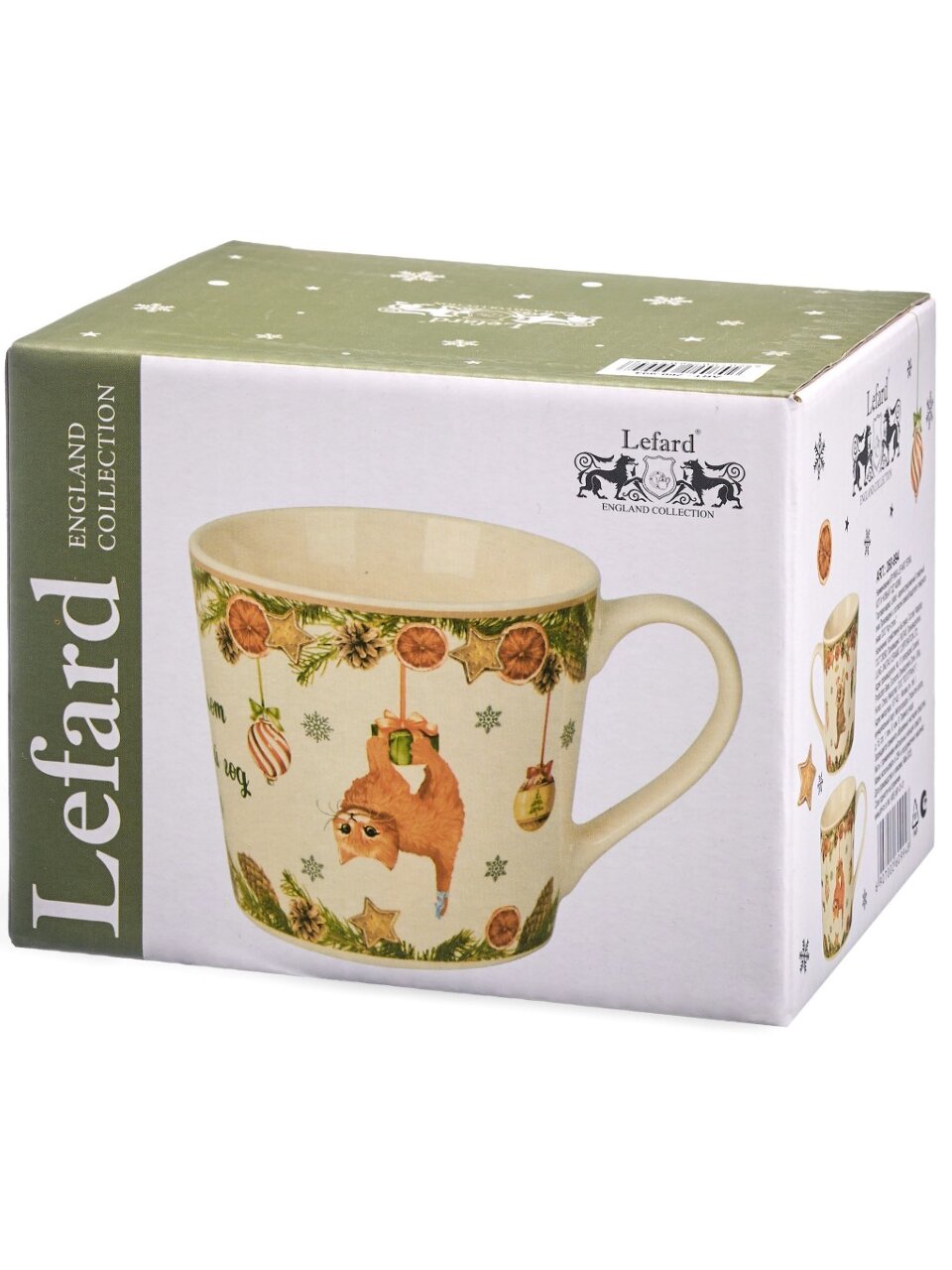 Кружка фарфор Lefard 400 мл «Елка, кот и Новый год» — праздничный подарок с ярким дизайном, подходит для горячих и холодных напитков. Идеально для дома, дачи и офиса.