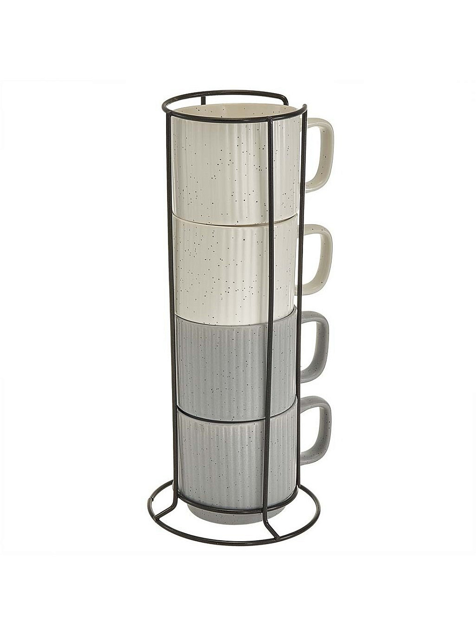 В комплект входят 4 керамические кружки объемом 320 мл и металлическая подставка для их компактного вертикального хранения. Товар поставляется в подарочной упаковке.