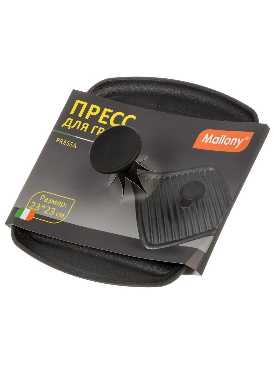 Вы можете приобрести «Пресс для гриля чугун, 23 см, Mallony, Pressa, кнопка бакелит, бакелитовая ручка, квадрат, 985062» и другие товары в нашем интернет-магазине в Старом Осколе по низким ценам и с бесплатным самовывозом.