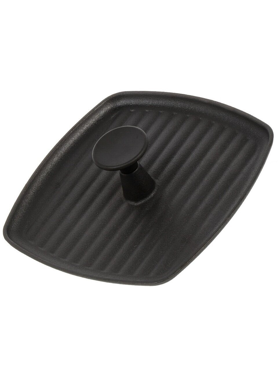 - Чугунная квадратная форма равномерно распределяет тепло и подходит для всех типов плит.