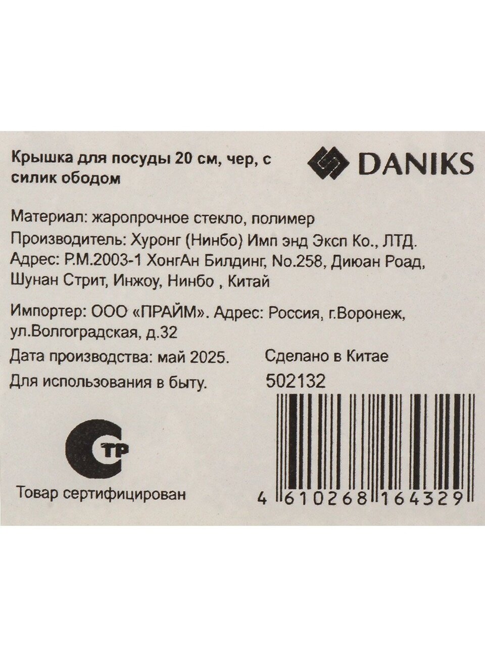 Вы можете приобрести «Крышка для посуды стекло, 20 см, Daniks, черная, с силиконовым ободом, HA20B» и другие товары в нашем интернет-магазине в Тамбове по низким ценам и с бесплатным самовывозом.