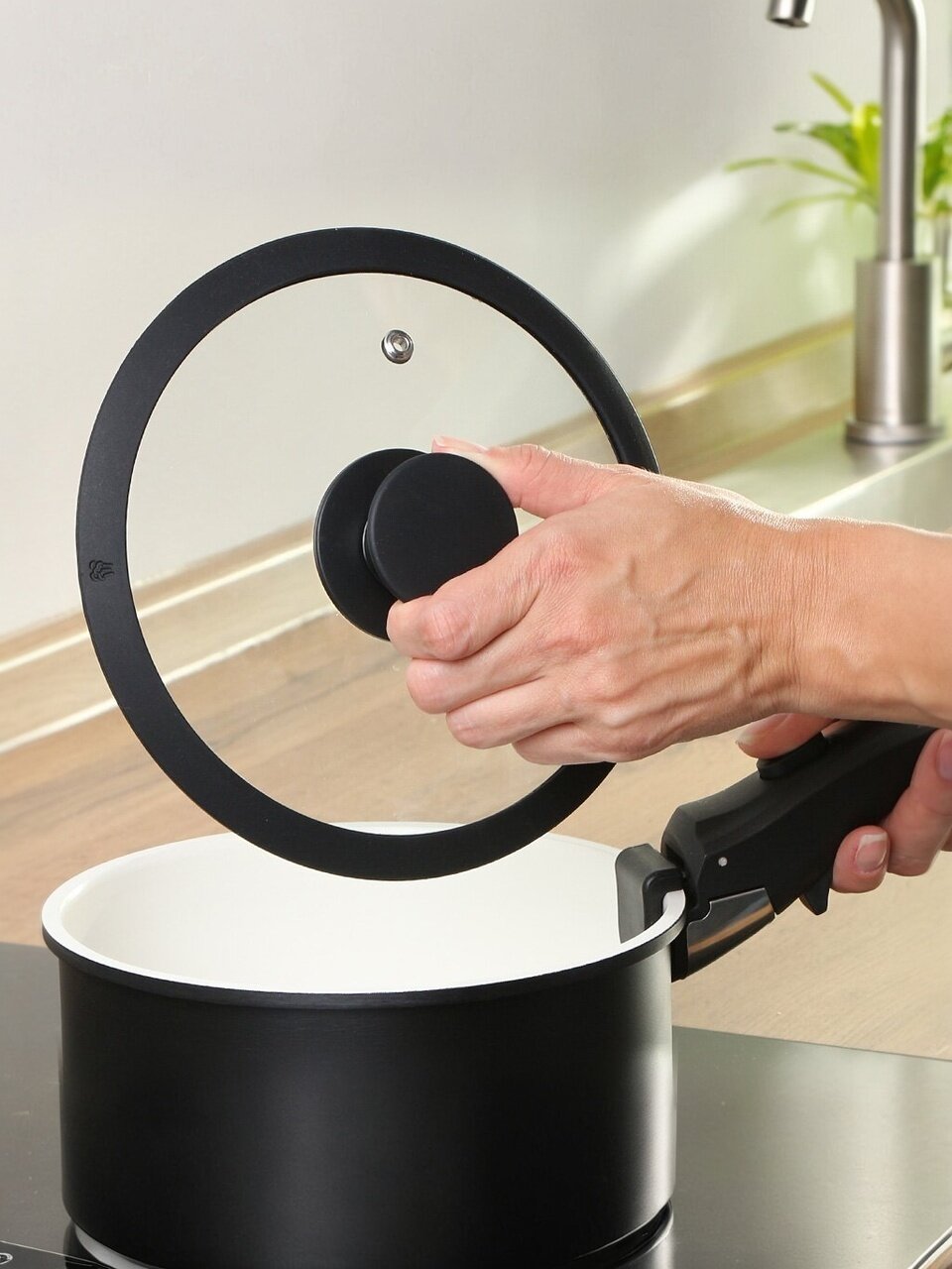 - Оптимальный размер 20 см — подходит для большинства кастрюль и сковород; долговечные материалы обеспечивают срок службы до 5 лет