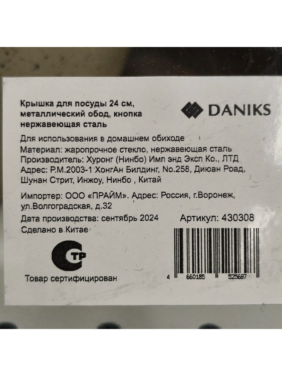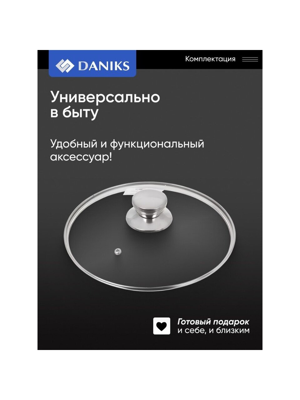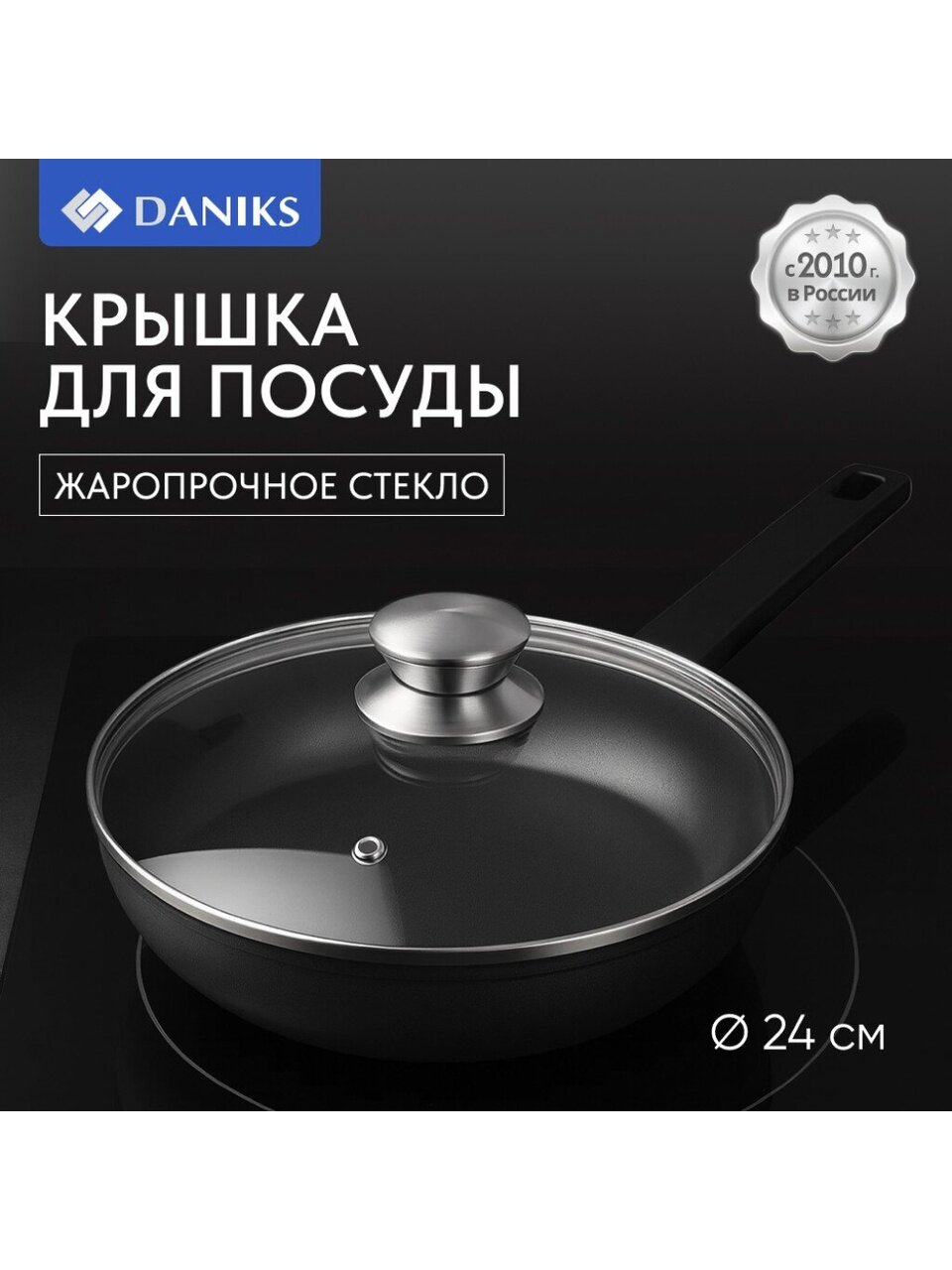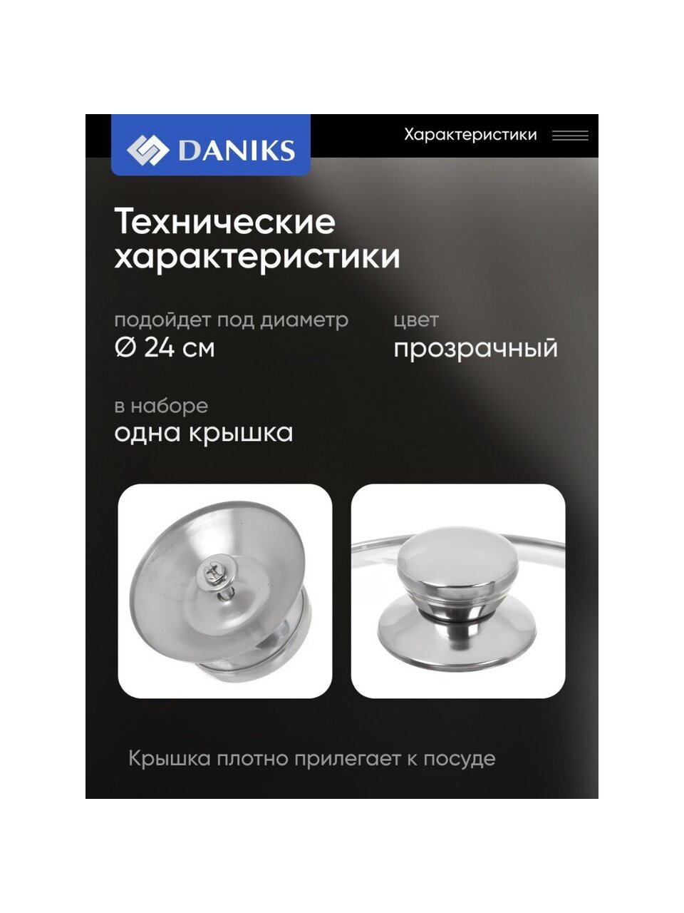 Вы можете приобрести «Крышка для посуды стекло, 24 см, Daniks, металлический обод, кнопка нержавеющая сталь, Д5724» и другие товары в нашем интернет-магазине в Обнинске по низким ценам и с бесплатным самовывозом.