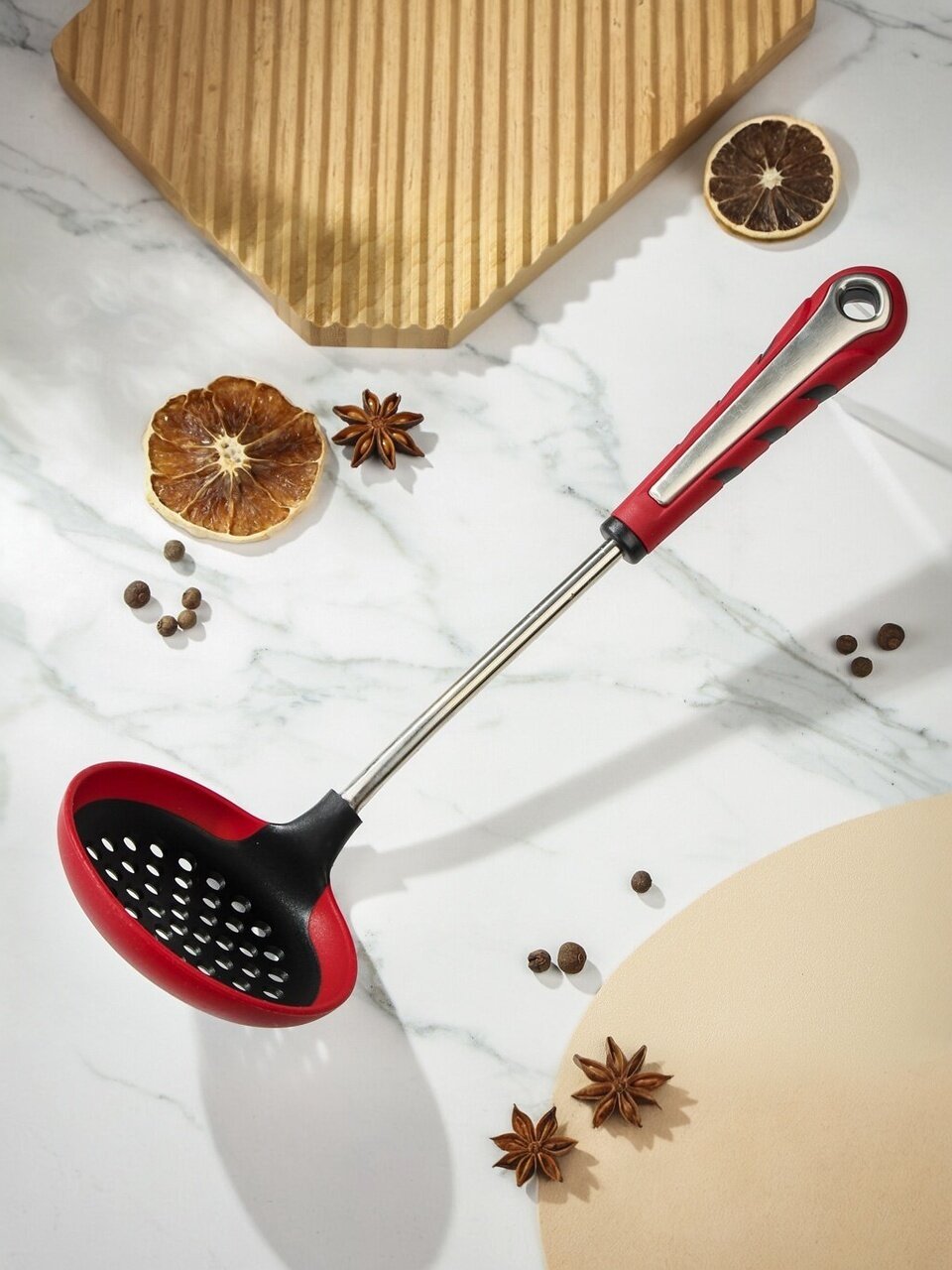 Шумовка Daniks Salsa YW-KT386-5 — идеальный помощник на кухне, который сочетает в себе стиль и функциональность. Изготовленная из нейлона и силикона, она обеспечивает безопасное и удобное приготовление пищи. Красный цвет добавляет яркости и энергии вашему кухонному пространству.