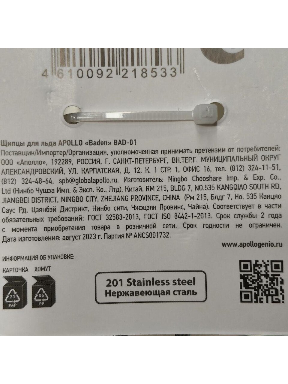Вы можете приобрести «Щипцы кухонные для льда, нержавеющая сталь, навеска, Apollo, Baden, BAD-01» и другие товары в нашем интернет-магазине в Россоши по низким ценам и с бесплатным самовывозом.