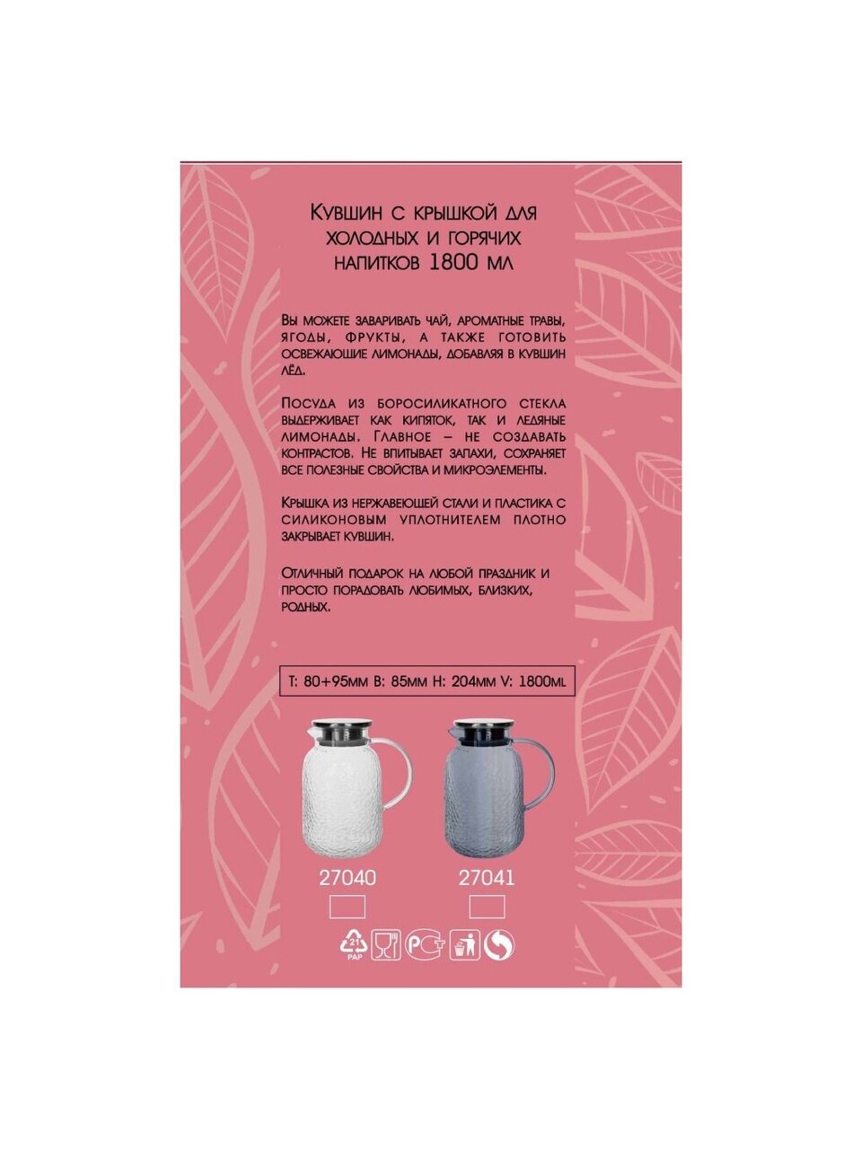 Вы можете приобрести «Кувшин стекло, 1.8 л, с крышкой, ТМ Глория, Bonjart, 27040» и другие товары в нашем интернет-магазине в Тамбове по низким ценам и с бесплатным самовывозом.