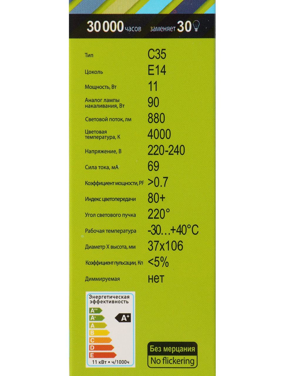- Эквивалент лампы накаливания, Вт90 Вт