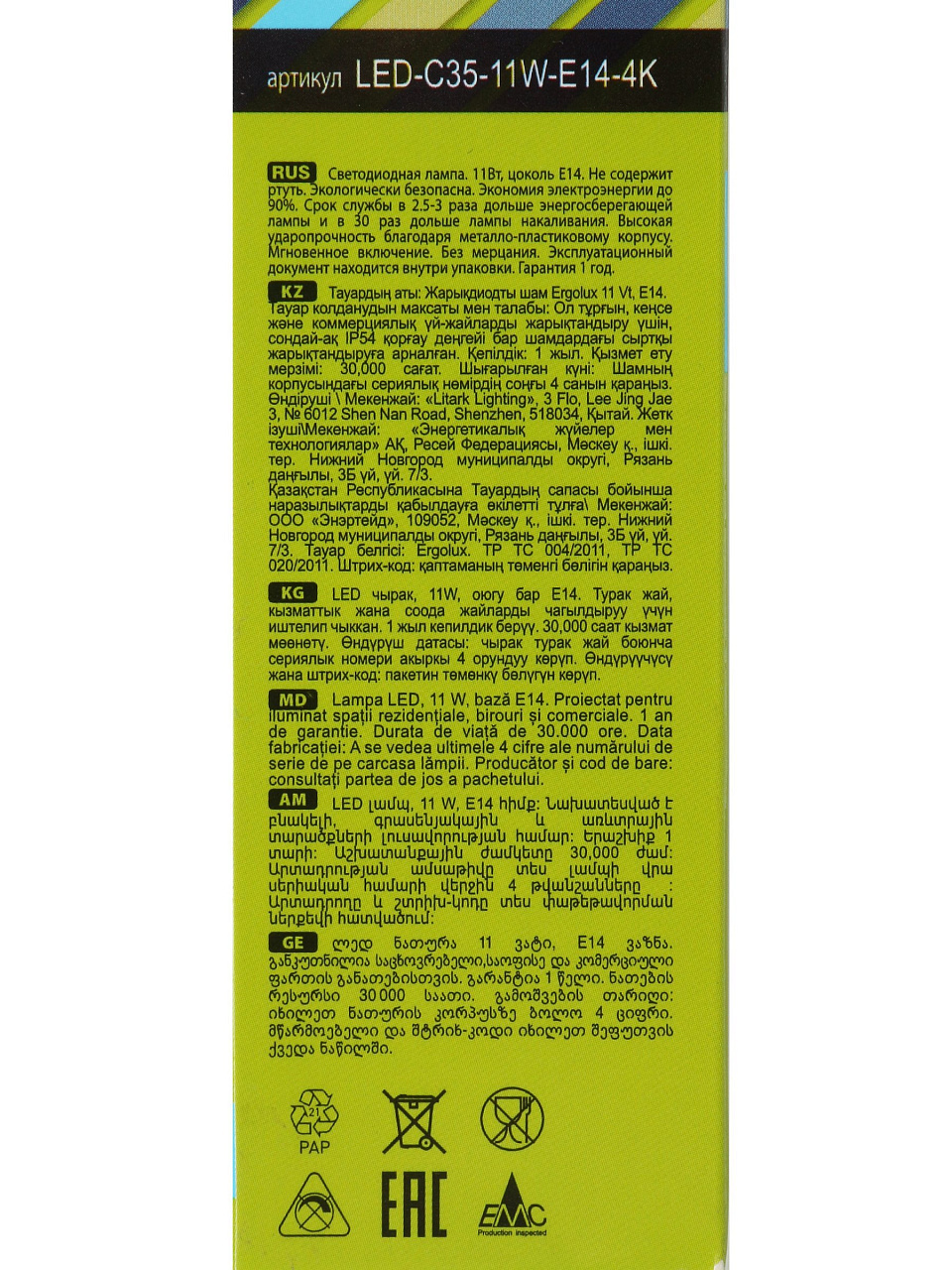 - Выполнена из экологически чистых материалов высокого качества, в составе которых не содержатся ртуть, свинец и фосфор.